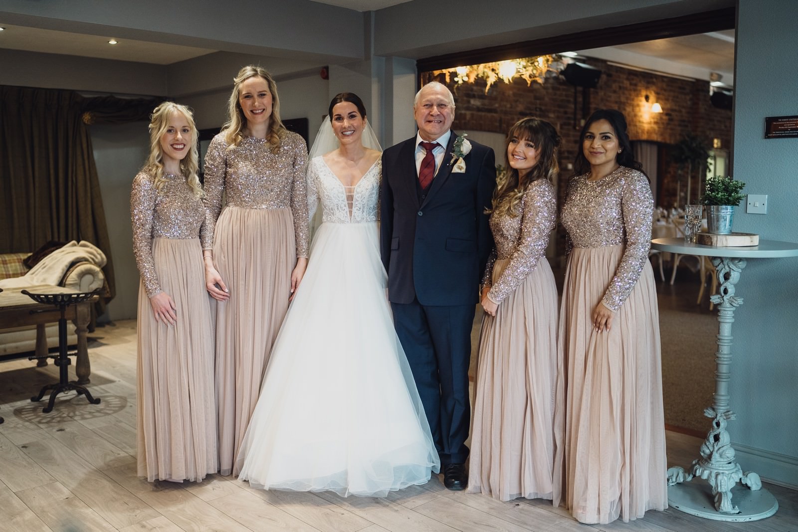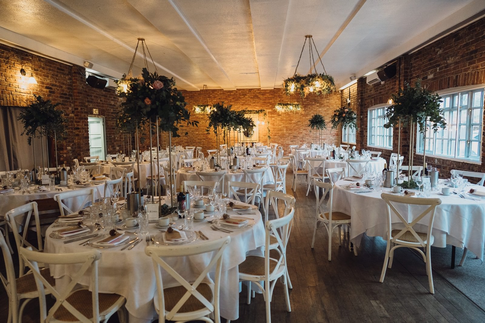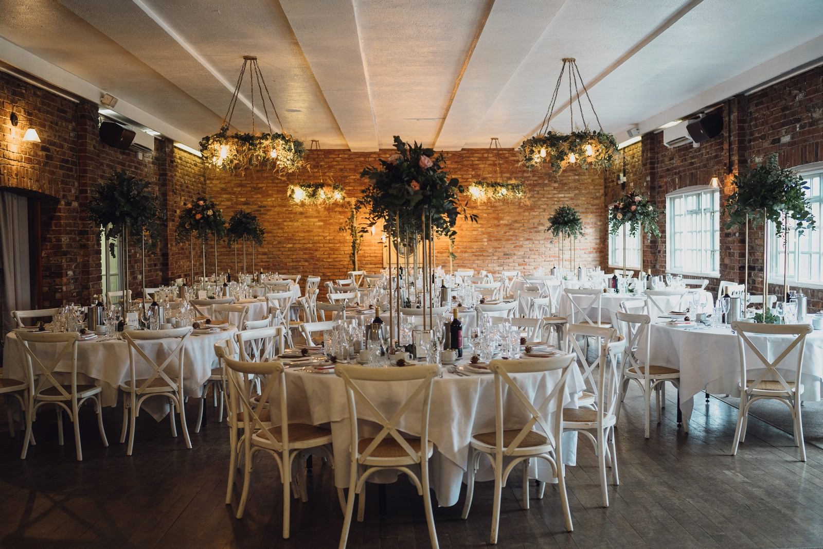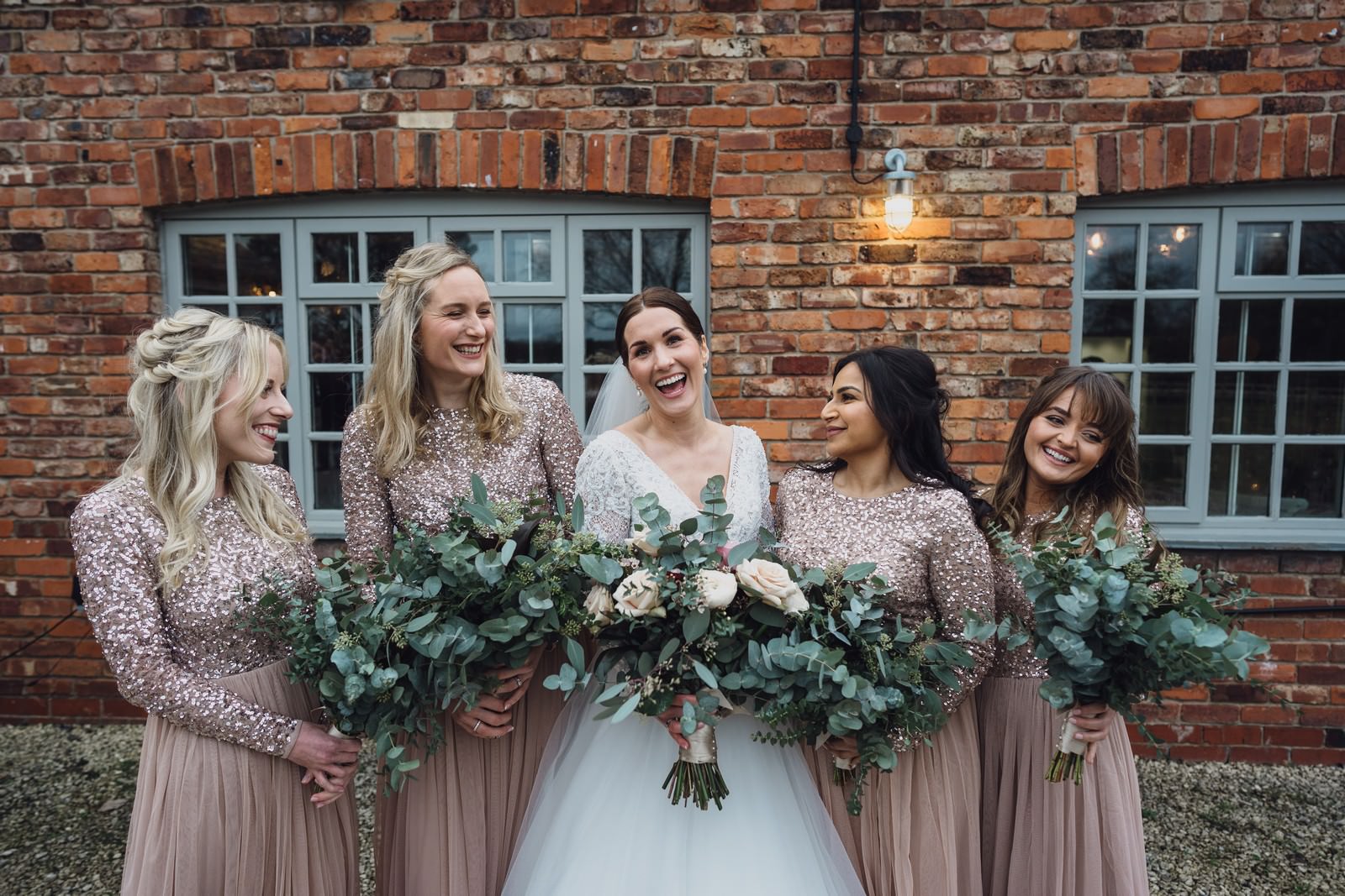 We picked the colours of our bridesmaid dresses- dusty pink and groomsmen suits- neutral tweed to fit tonally with the brickwork which looked lovely in the pictures. Finally there were quite a few nice gold touches on the plates, candles and table numbers which matched nicely with the bridesmaid sequin dresses.