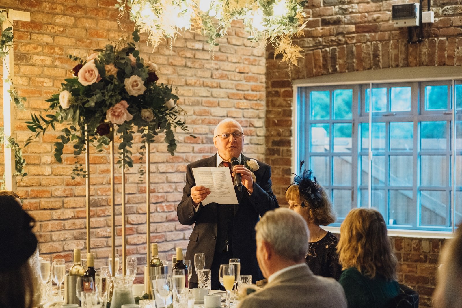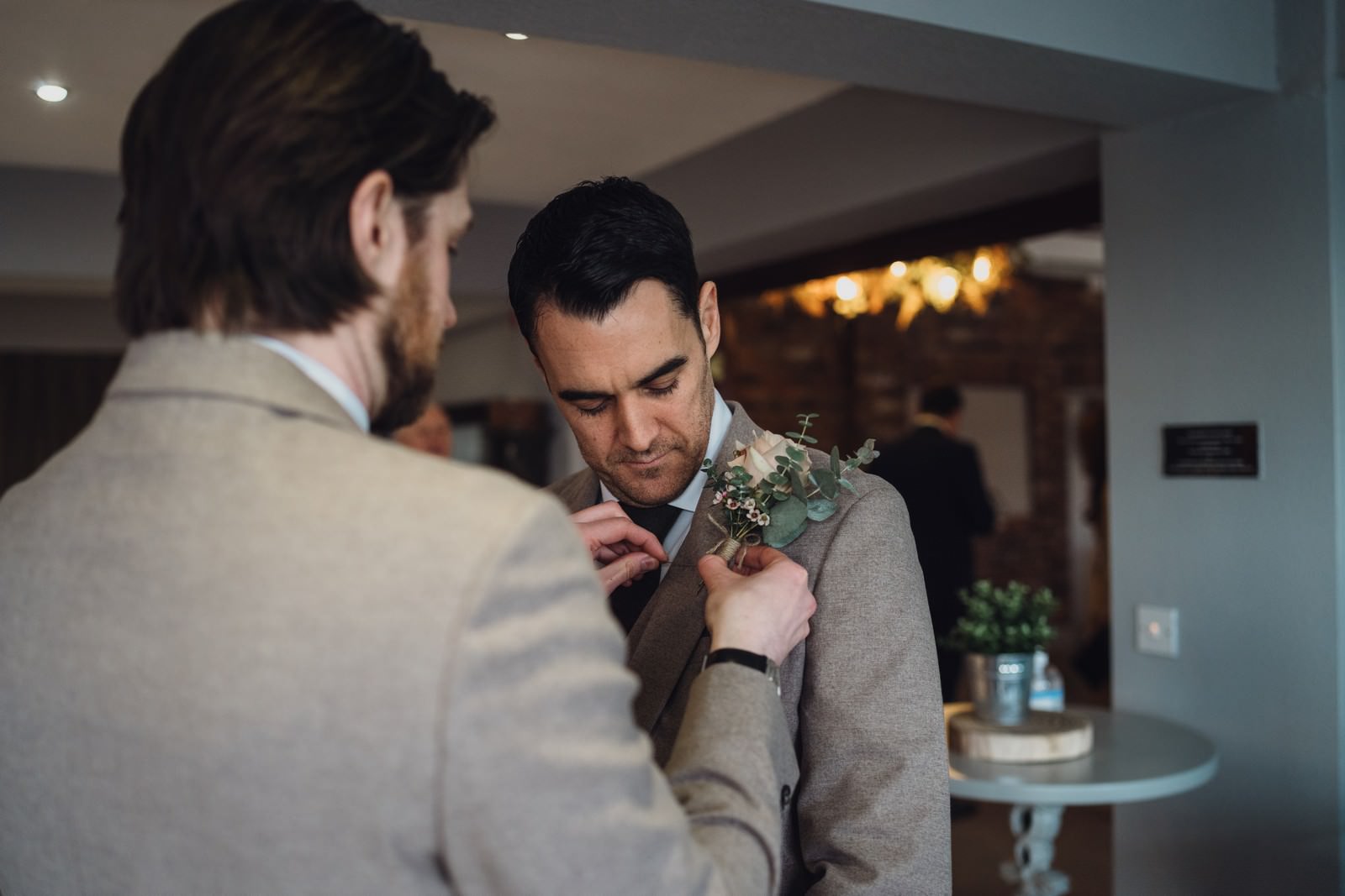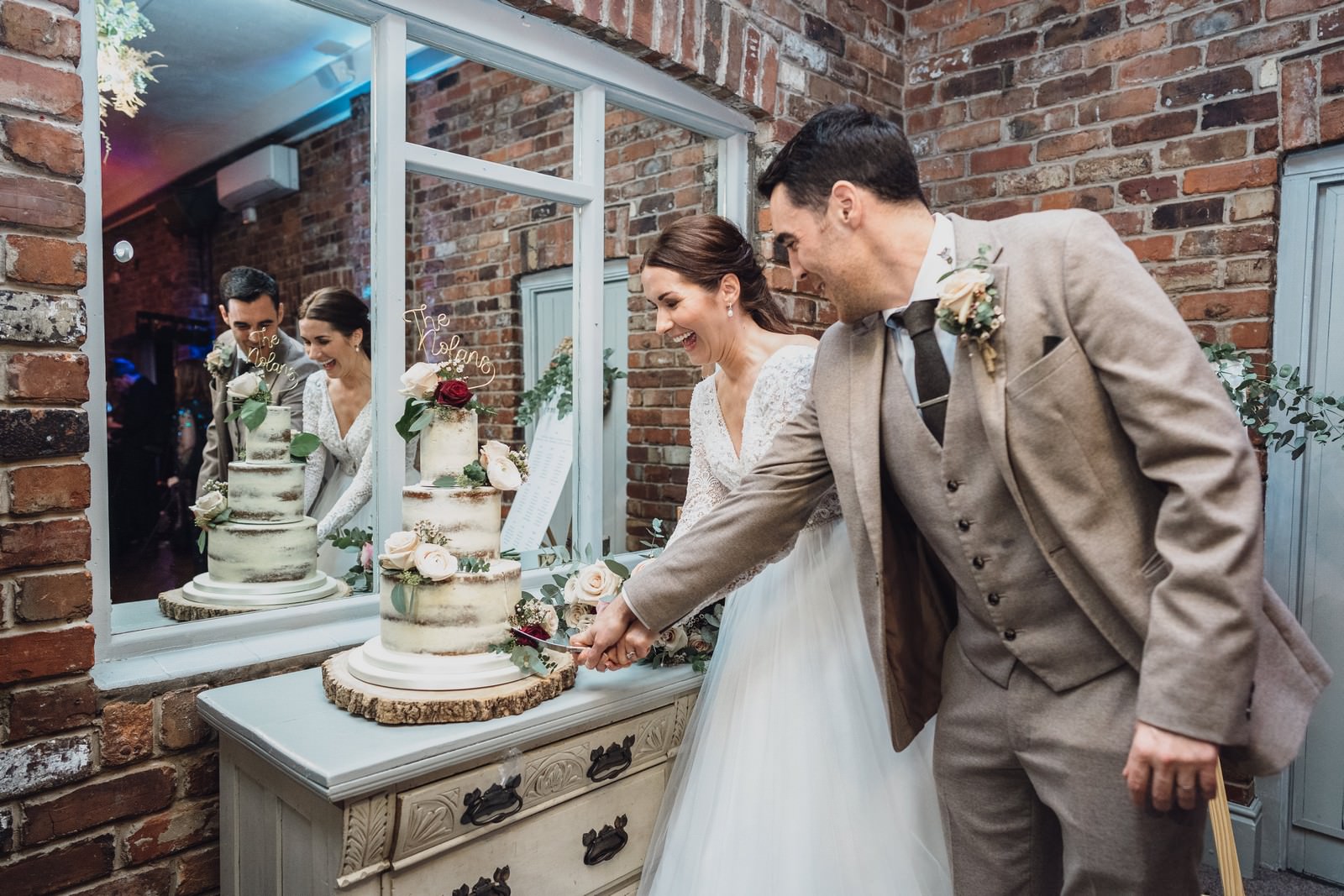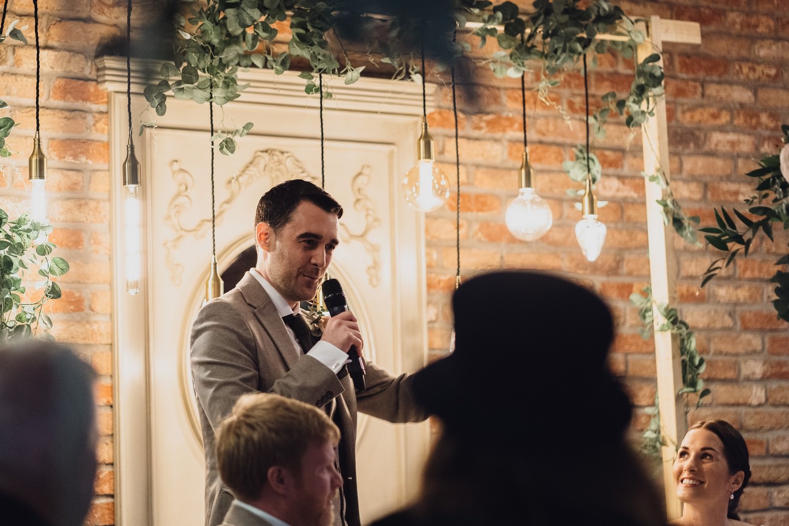 We picked the colours of our bridesmaid dresses- dusty pink and groomsmen suits- neutral tweed to fit tonally with the brickwork which looked lovely in the pictures. Finally there were quite a few nice gold touches on the plates, candles and table numbers which matched nicely with the bridesmaid sequin dresses.