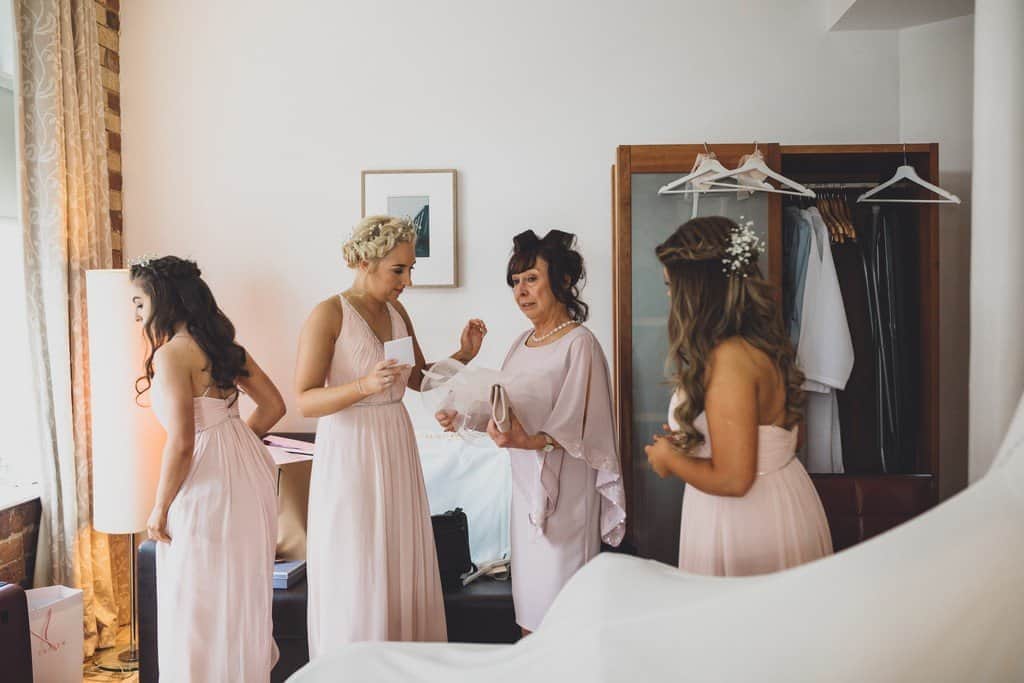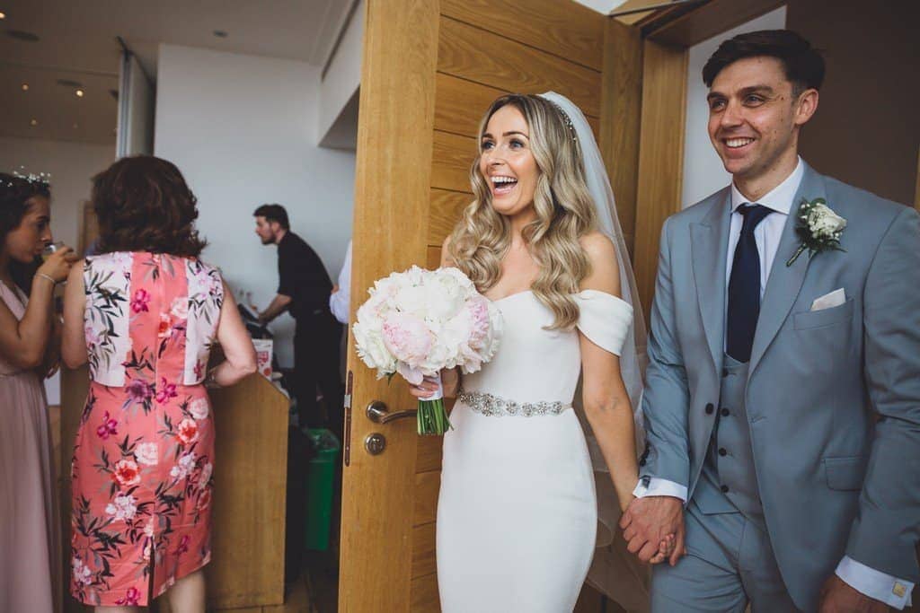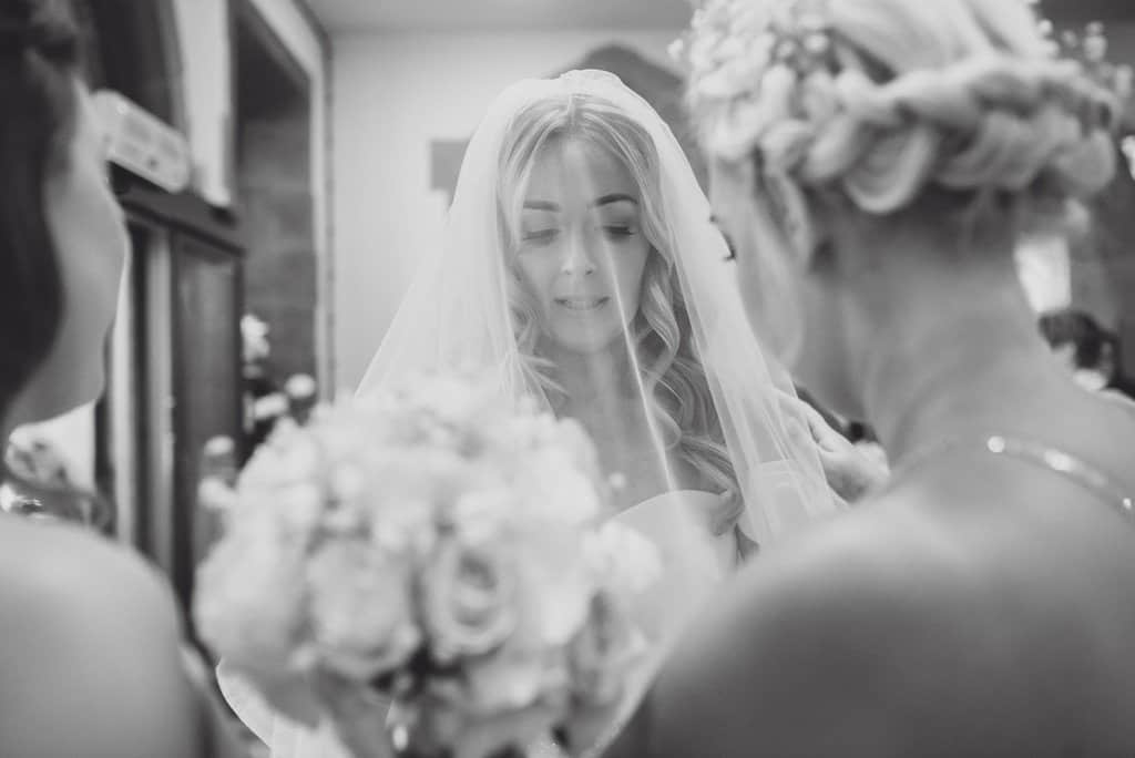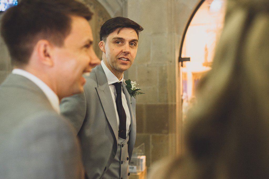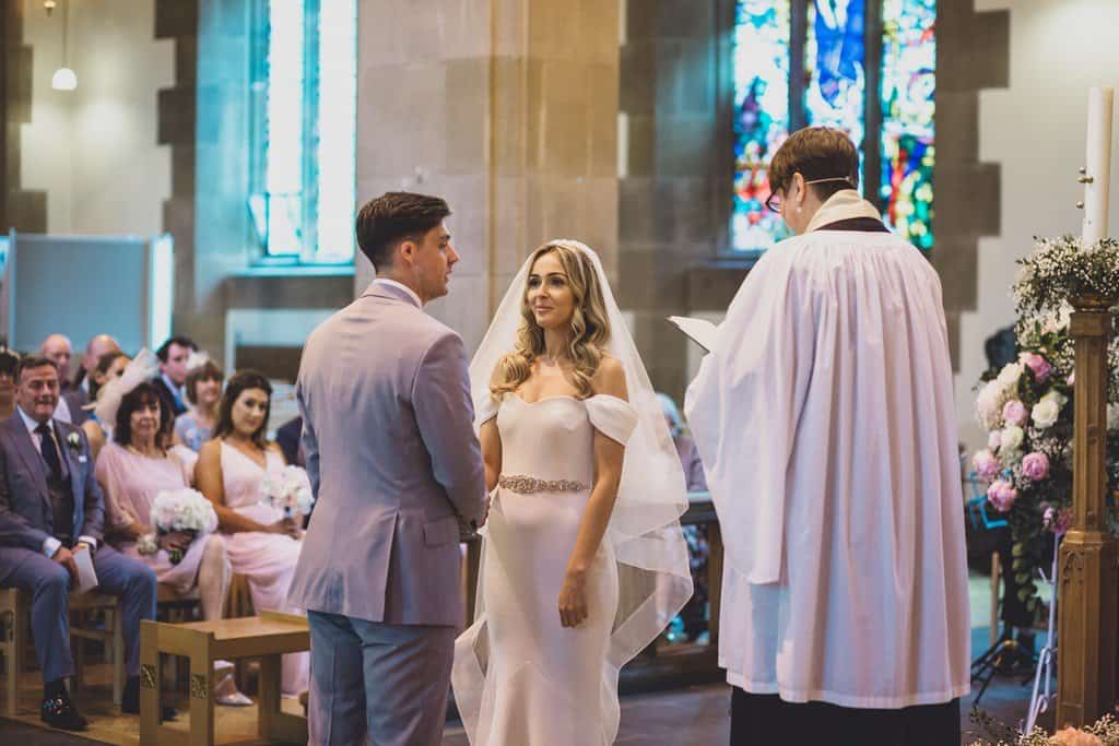 It’s supposed to be the brides prerogative to be a little late on her wedding day, although on this occasion it wasn’t of the brides making, but more about that later! Allie looked every part the hollywood starlet, breathtaking in a figure hugging stunning fitted gown with swag sleeves and her bridesmaids were beautiful too in pale dusky pink. Allie had chosen to keep the decor classically beautiful, with no fuss just simple elegance with the venue adorned with candles and beautiful pink and white blooms and foliage.