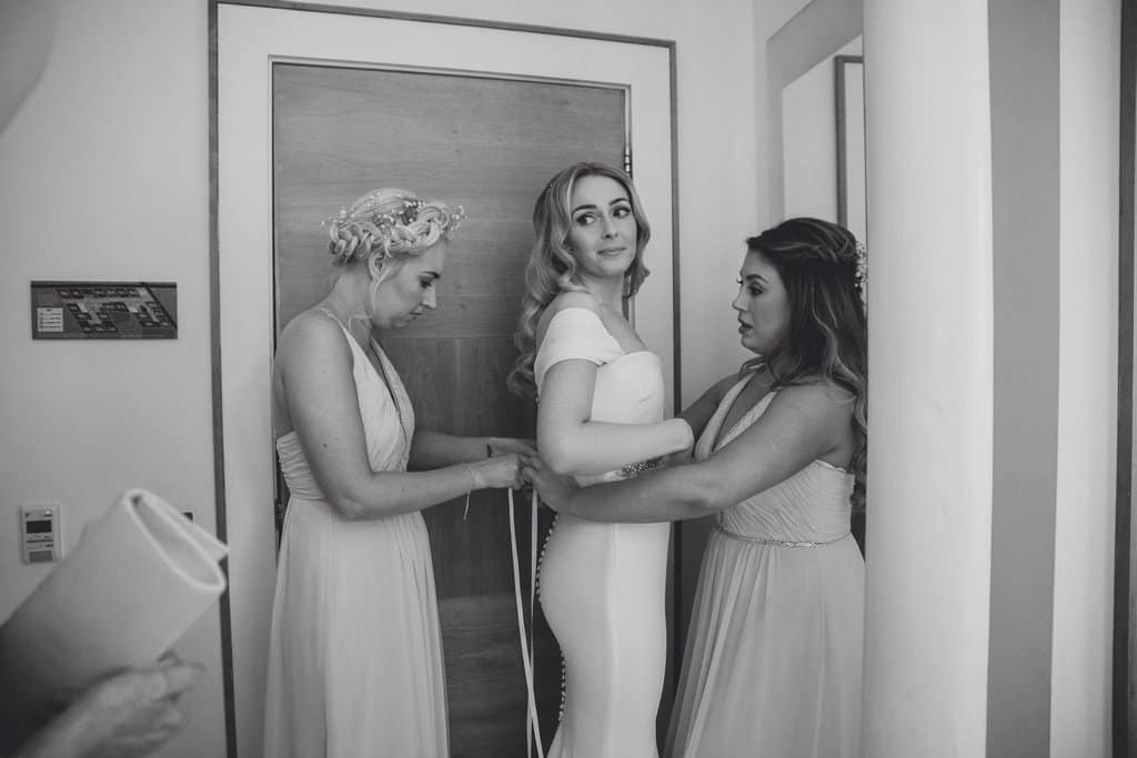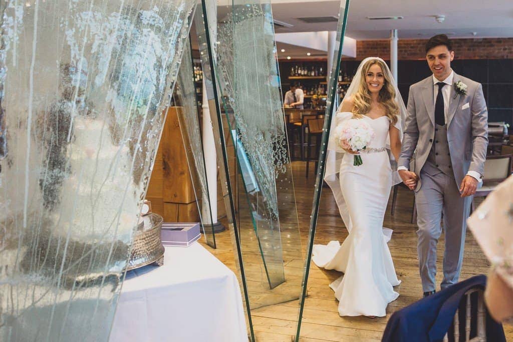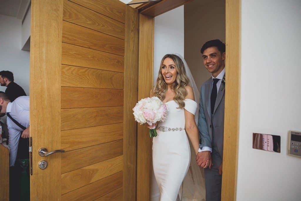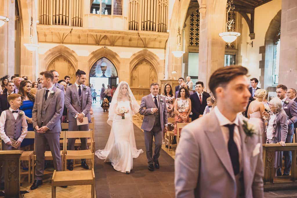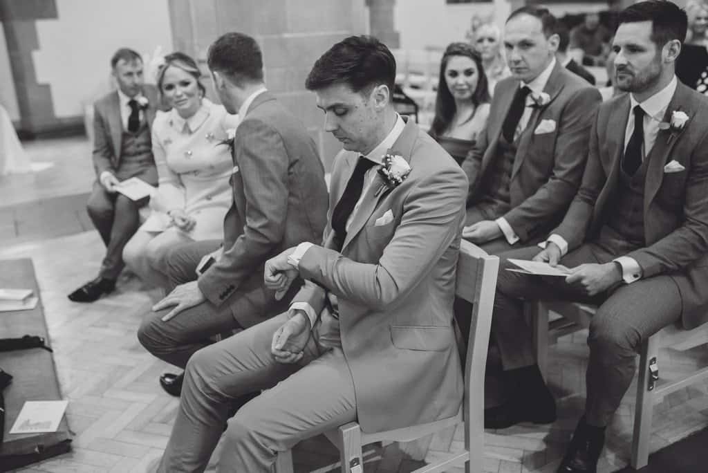 It’s supposed to be the brides prerogative to be a little late on her wedding day, although on this occasion it wasn’t of the brides making, but more about that later! Allie looked every part the hollywood starlet, breathtaking in a figure hugging stunning fitted gown with swag sleeves and her bridesmaids were beautiful too in pale dusky pink. Allie had chosen to keep the decor classically beautiful, with no fuss just simple elegance with the venue adorned with candles and beautiful pink and white blooms and foliage.