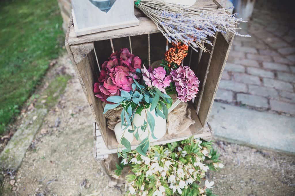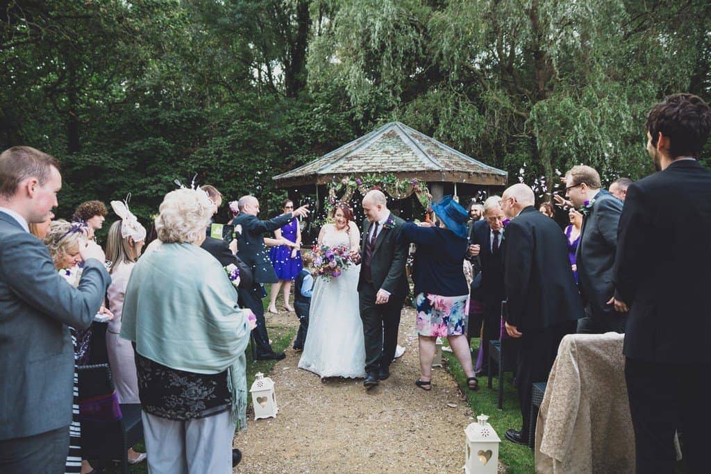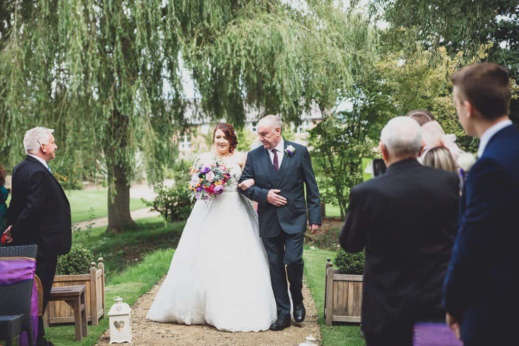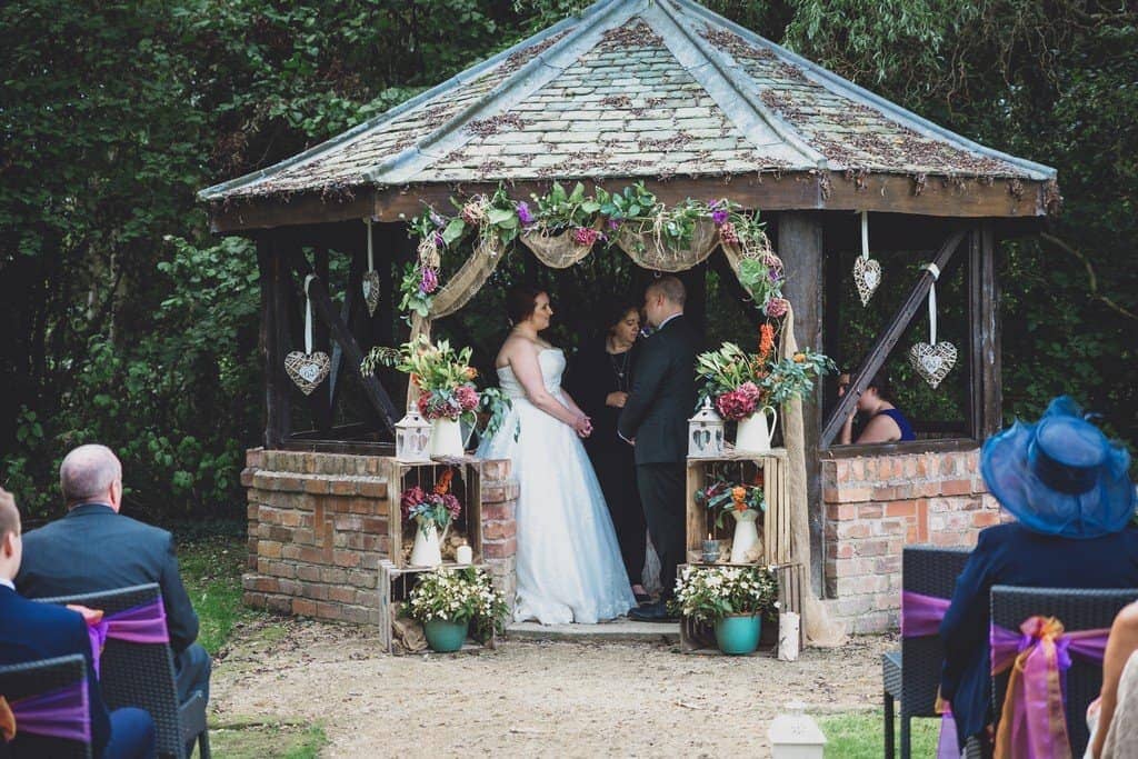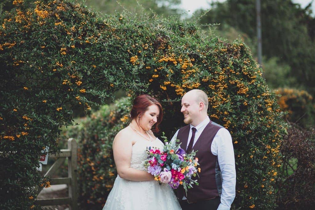 Becki and Nathan wanted an Autumn wedding and the weather at Manley Mere in Cheshire was just perfect for their outdoor ceremony in September. The bridesmaids looked amazing in their ‘Cadbury purple’ dresses against the lush greens of the woodland setting and Becki’s flowers were absolutely incredible, picking out the bright colours from the rest of the theme.