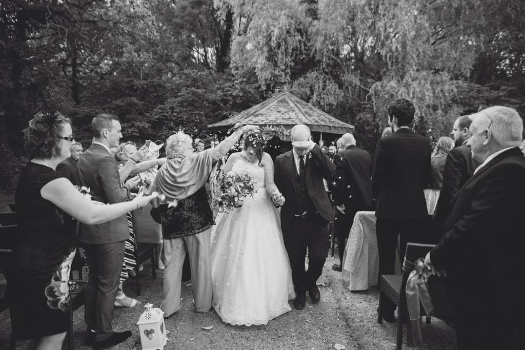 Becki and Nathan got married in The Mere Summer House and it was beautiful, Becki’s dad walked her down the aisle, calming her nerves as they crossed the bridge and she looked gorgeous, wearing her Nana’s pearls leant kindly by her cousin Aimee. The grounds and the lake side of Manley Mere were also perfect for photos and we got some lovely ones of the little flower girls as well as Becki and Nathan walking through the leafy pathways.