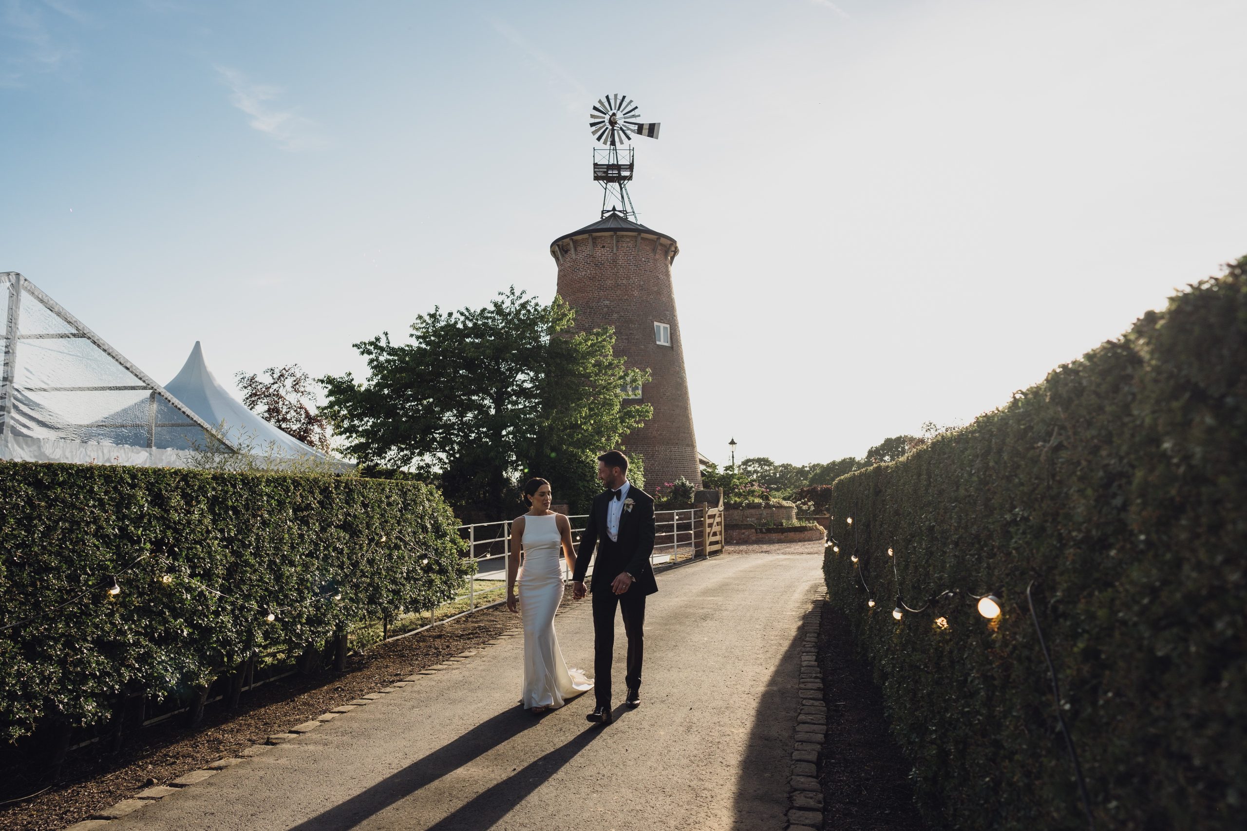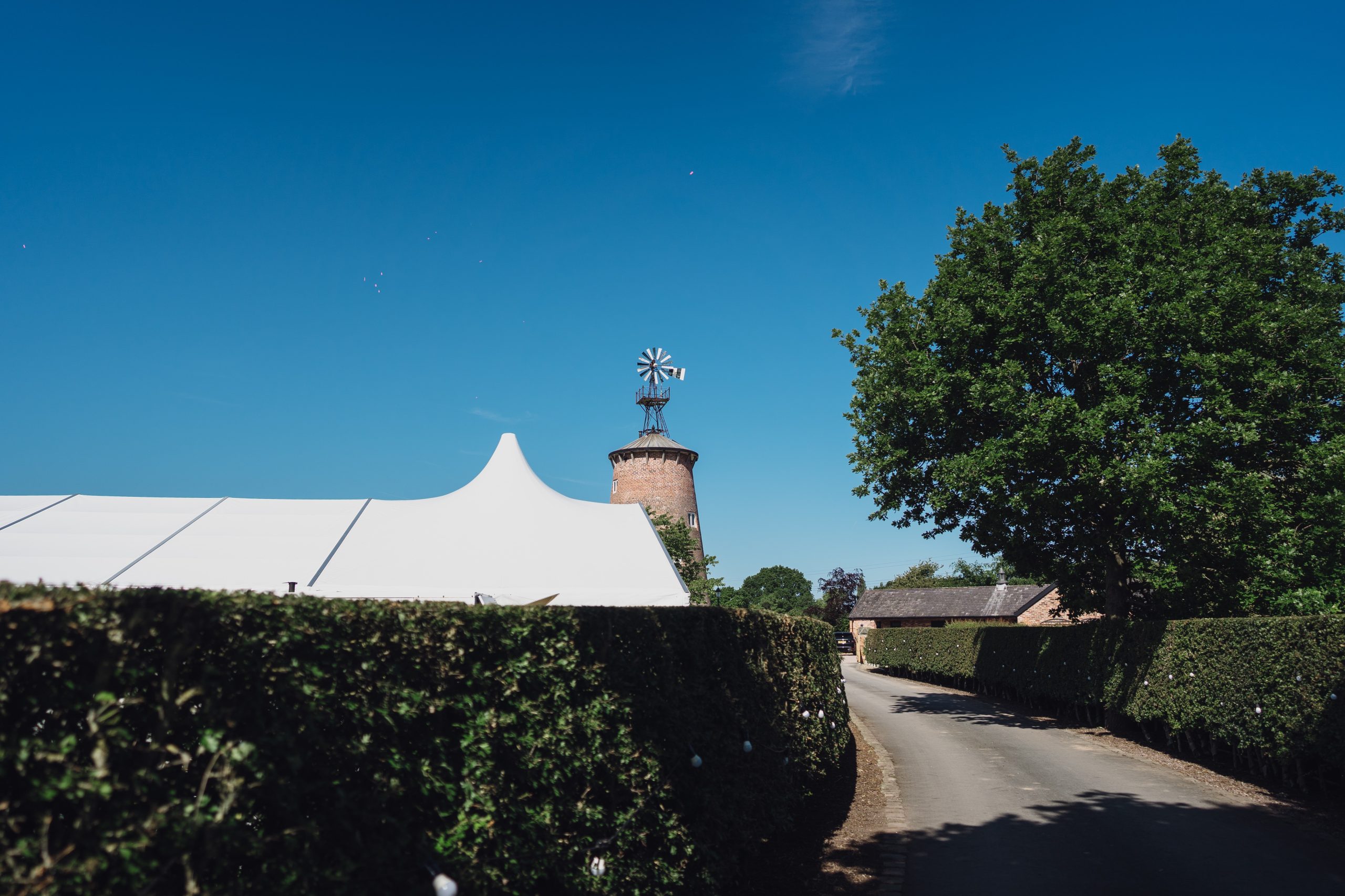 Marquee at a windmill. It is said that “home is where the heart is” so why not get married at the place that means the most to you? That’s certainly what Becky & Mike did when they chose the family home to hold their marquee wedding. The ceremony was held at their local Cheshire church followed by a beautiful black tie wedding in the garden.