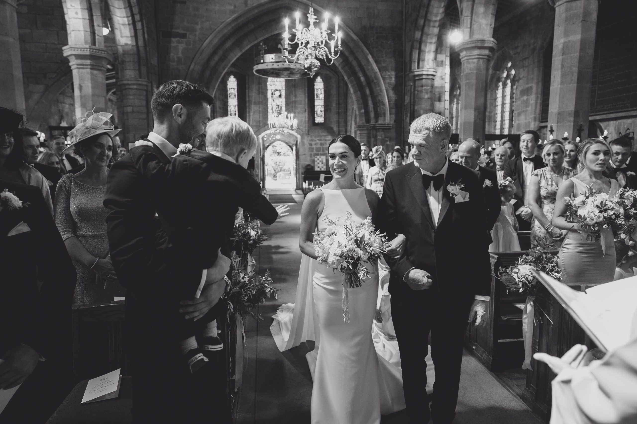 Oscar walking down the aisle (our 2 year old son)