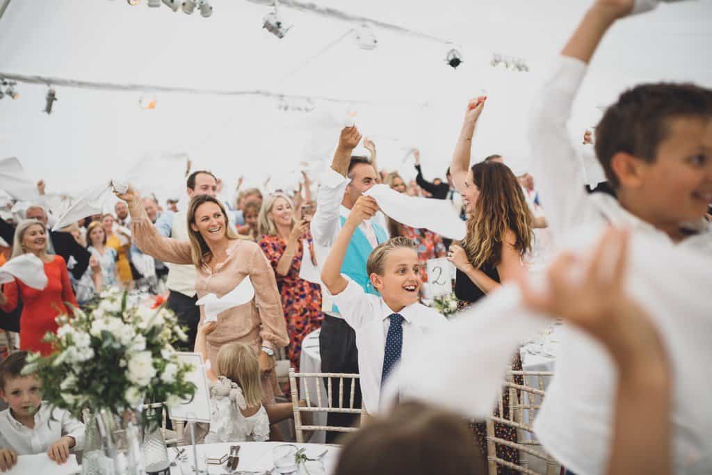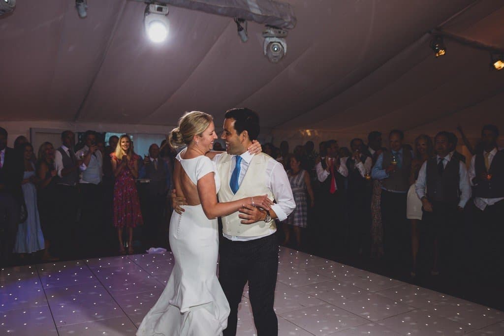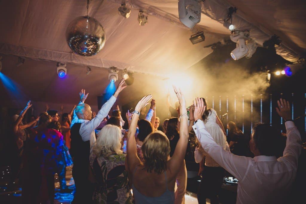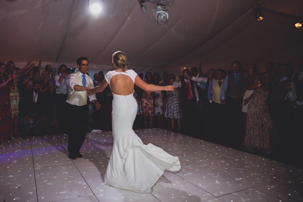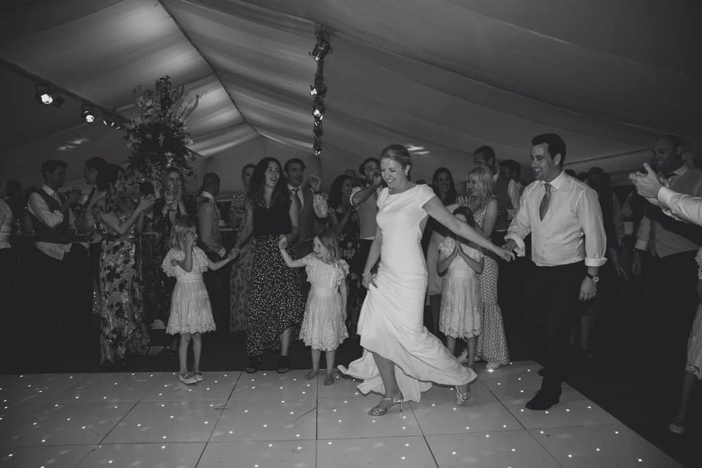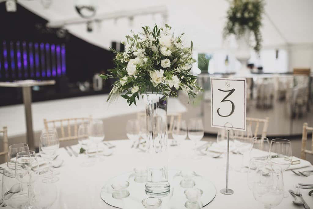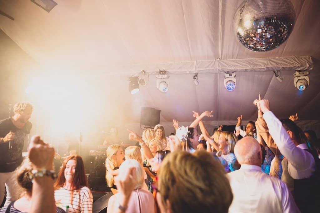 From napkin waving from the guests as the couple entered as the new MR & MRS to the heartfelt speeches… the band then kicked the party off! The Marquee at their Cheshire home was set out beautifully, the stage and dancefloor were all set ready for the evening party – a 360 mirrored bar and then white and green flowers – simply elegant!