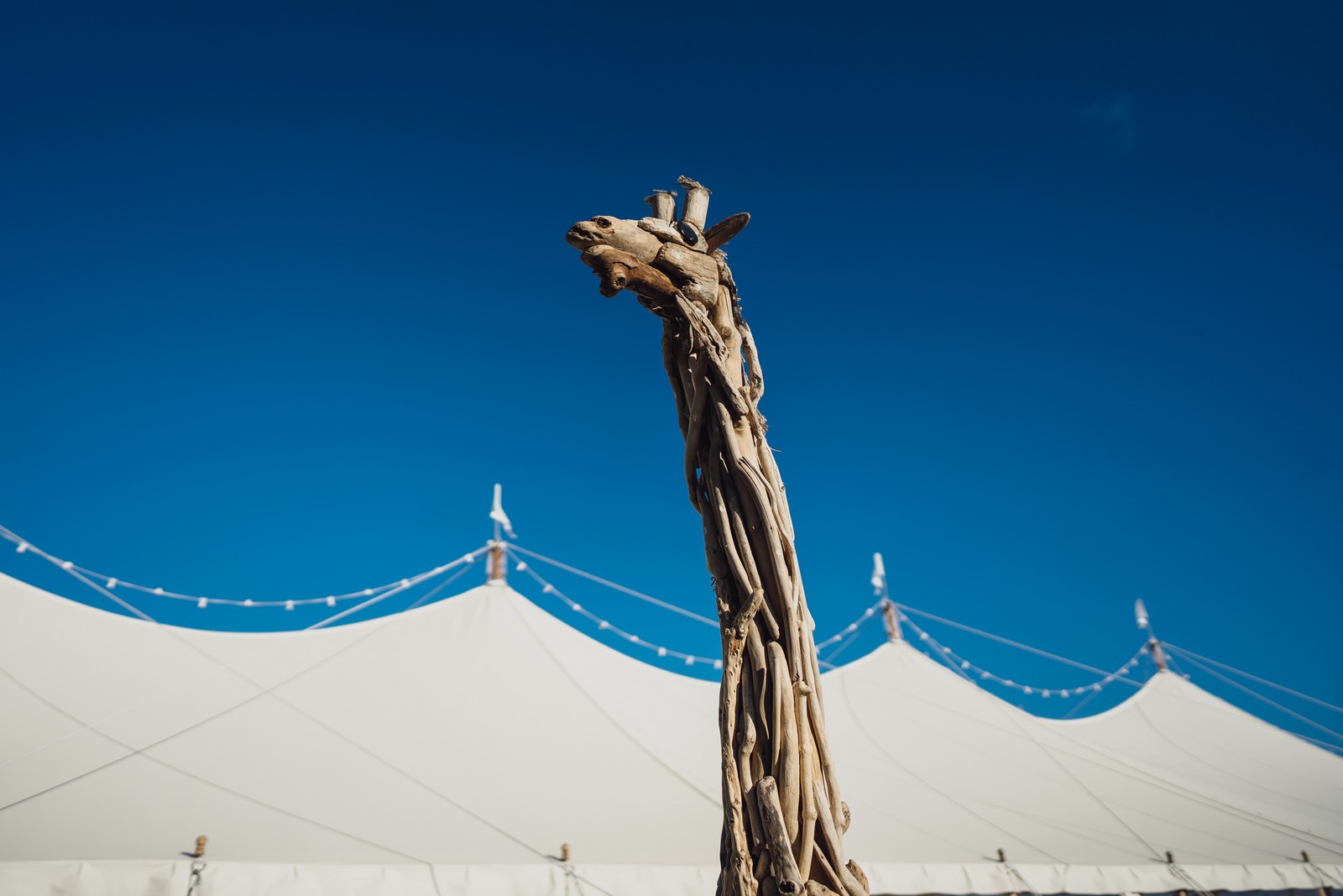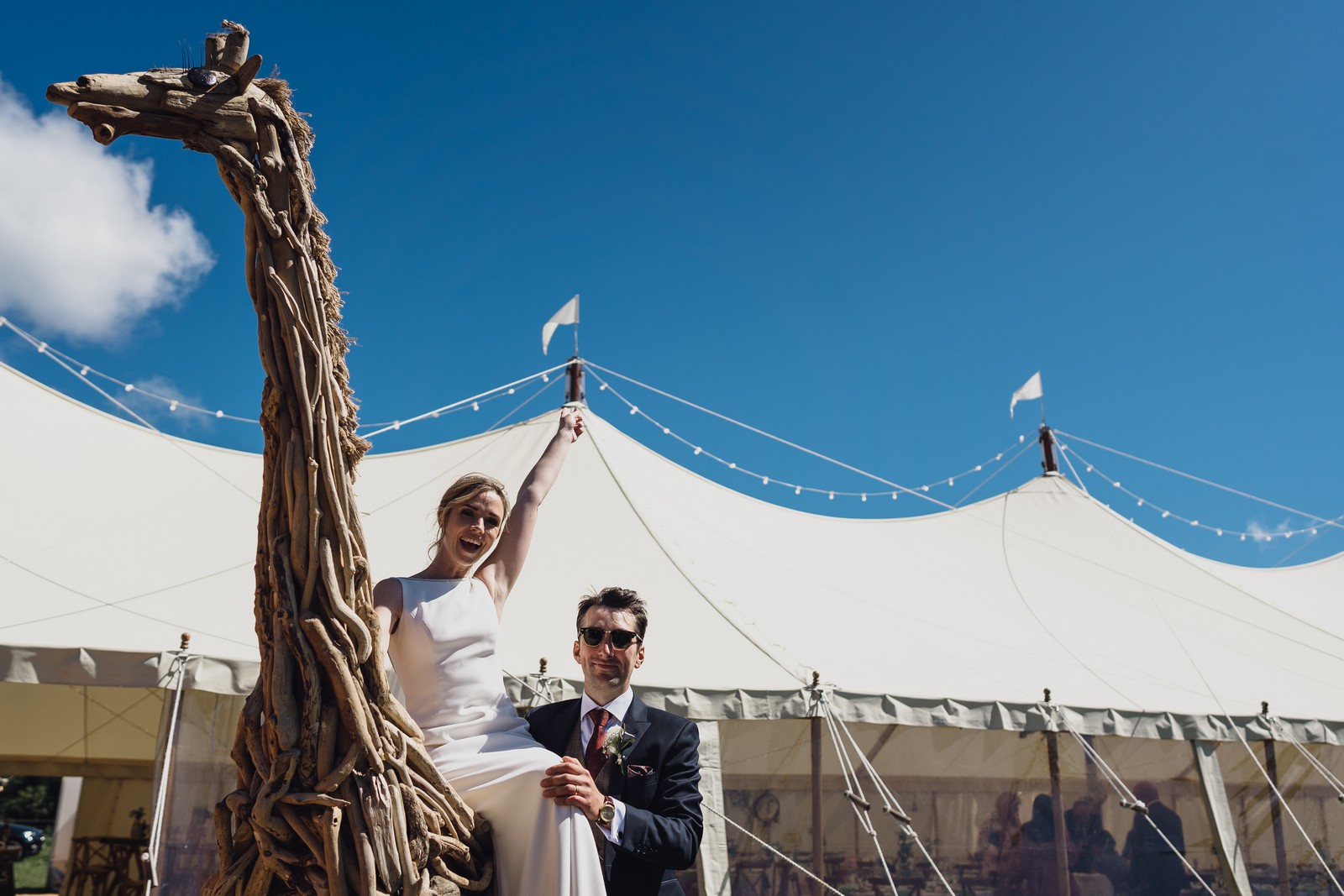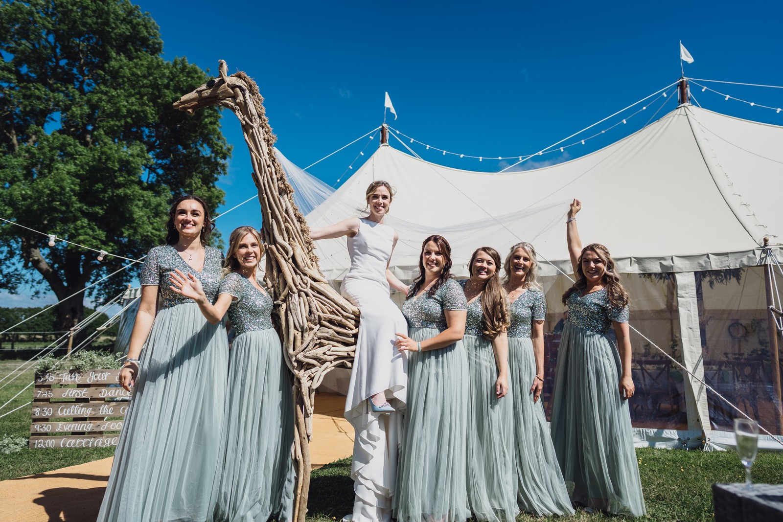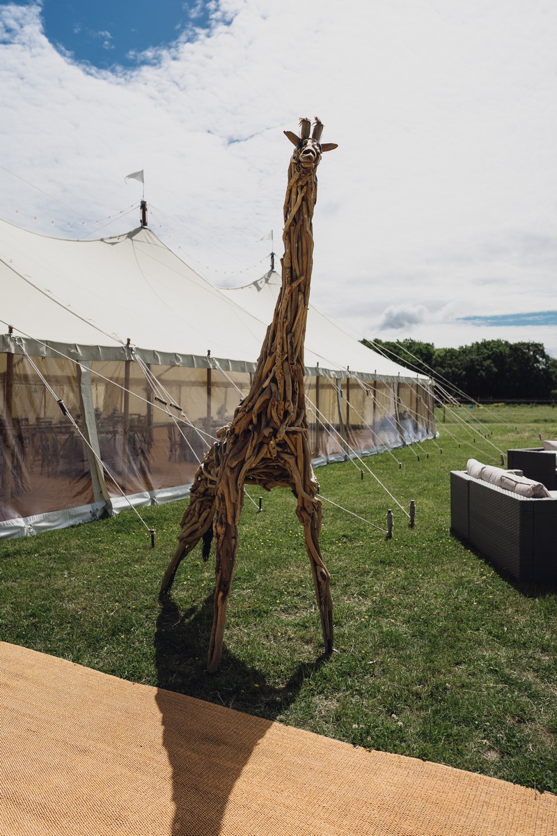 Having my dad (father of the bride) hand make a Giraffe out of driftwood and have it travelling to the marquee in the horse box! The same mode of transport used to get the bridal party there.