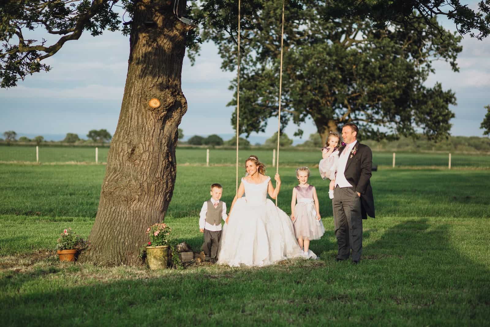 The marquee was based in the field with the perfect view of a tree with swing, a gift from Helen’s sister.