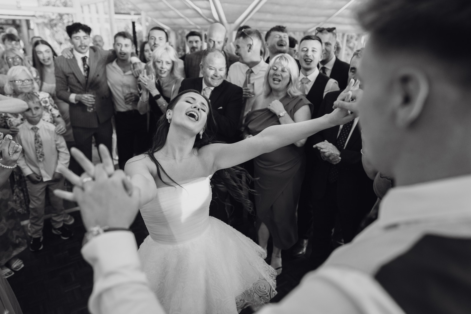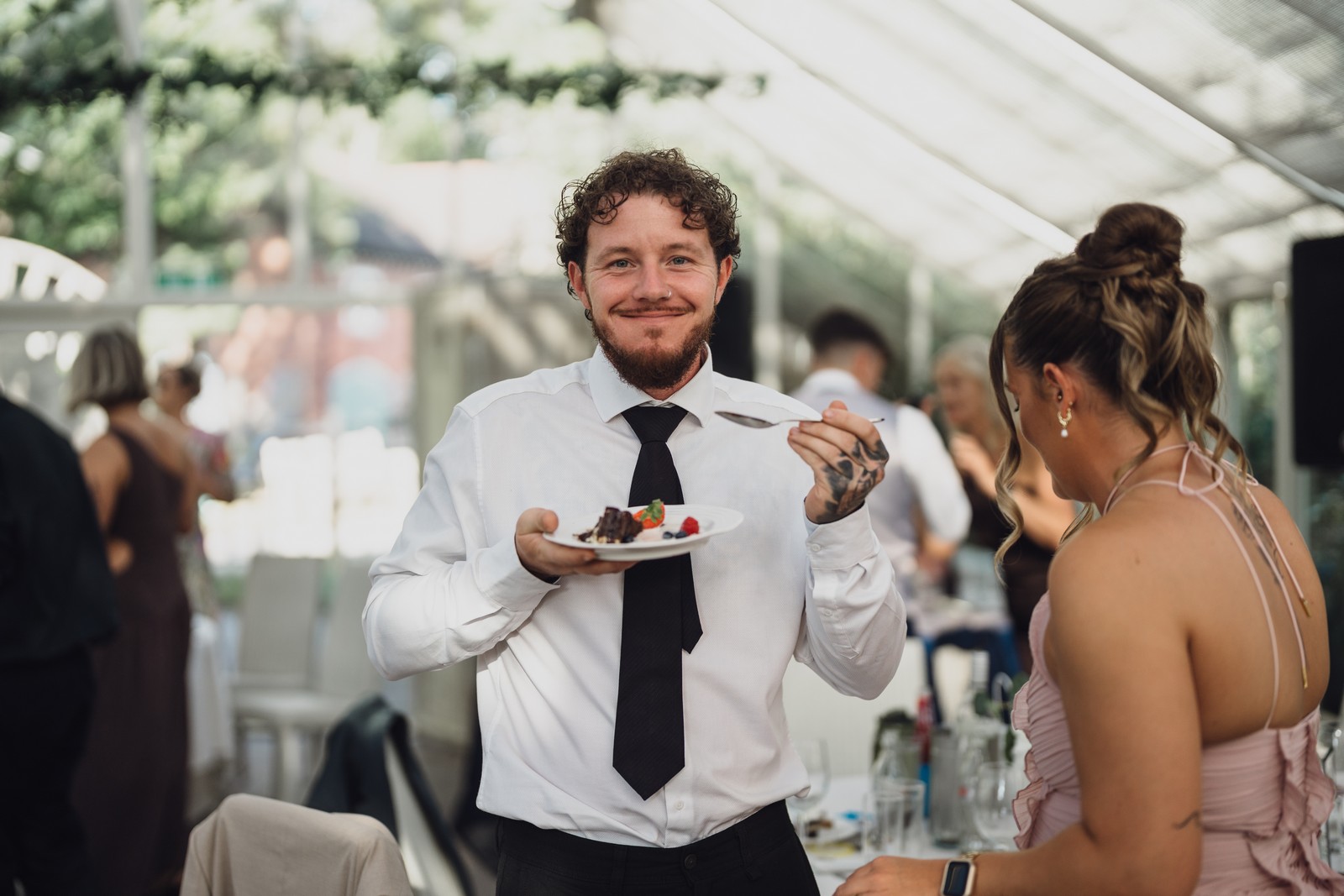 The day was also filled with brilliant fun. Their guests were treated to singing waiters (the amazing Black Box Events), who brought the room to life before handing the mic over to the best man for a rousing, hilarious rendition of Angels. Every part of the day was perfectly them – unexpected, full of laughter, and unforgettable.