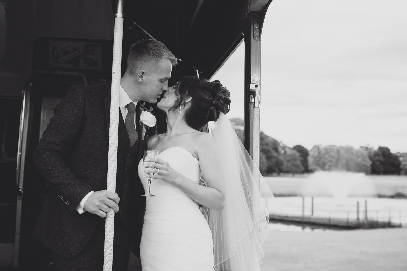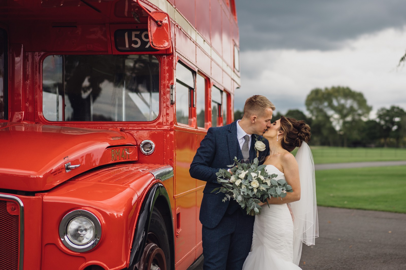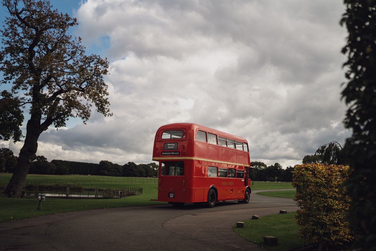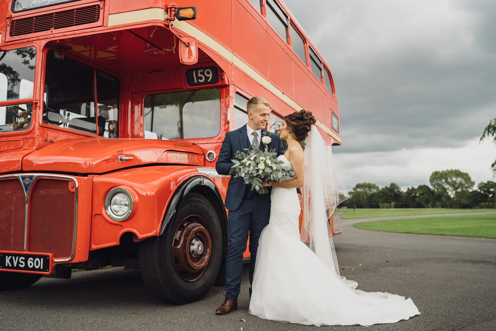 Merrydale Manor looked absolutely beautiful, with candles all up the aisle and a white carpet to lead Gemma to Lewis. We were so lucky with the weather and we managed to get some lovely couples portraits with the big red wedding bus and in the grounds of Merrydale.