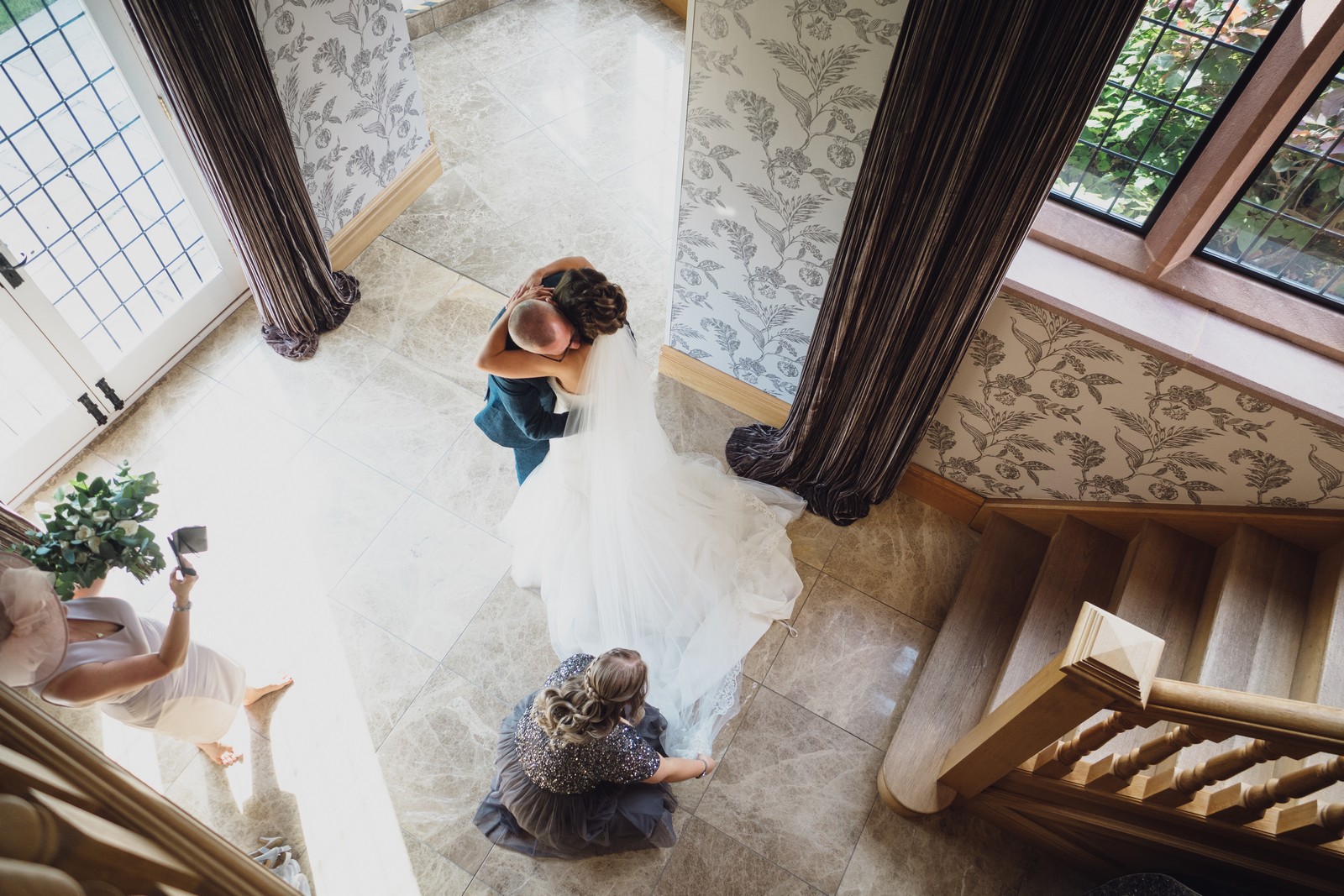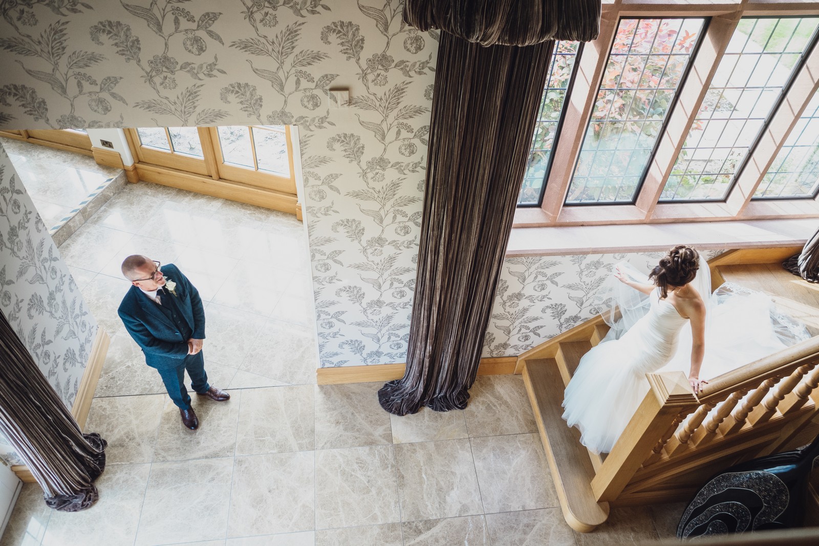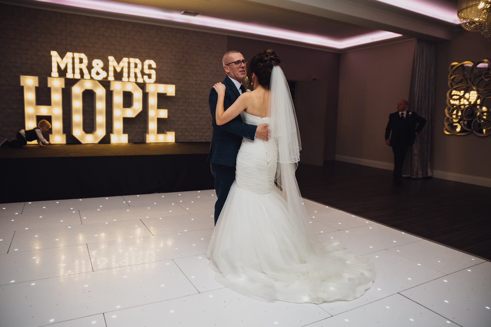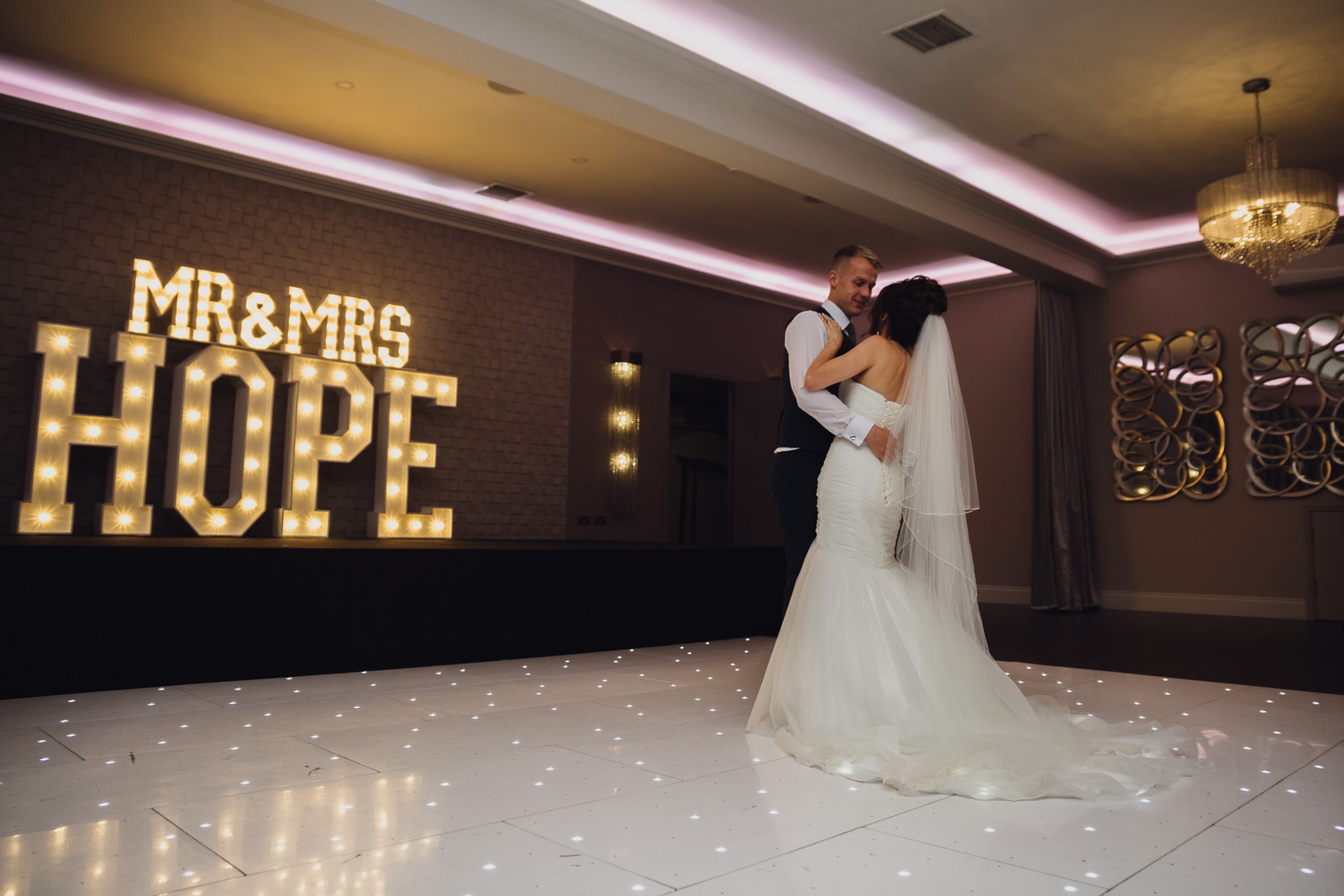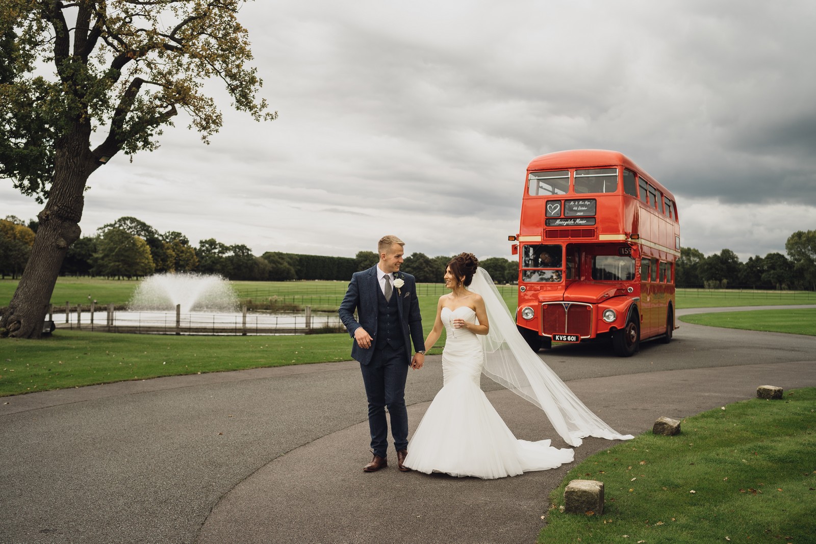Merrydale Manor looked absolutely beautiful, with candles all up the aisle and a white carpet to lead Gemma to Lewis. We were so lucky with the weather and we managed to get some lovely couples portraits with the big red wedding bus and in the grounds of Merrydale.