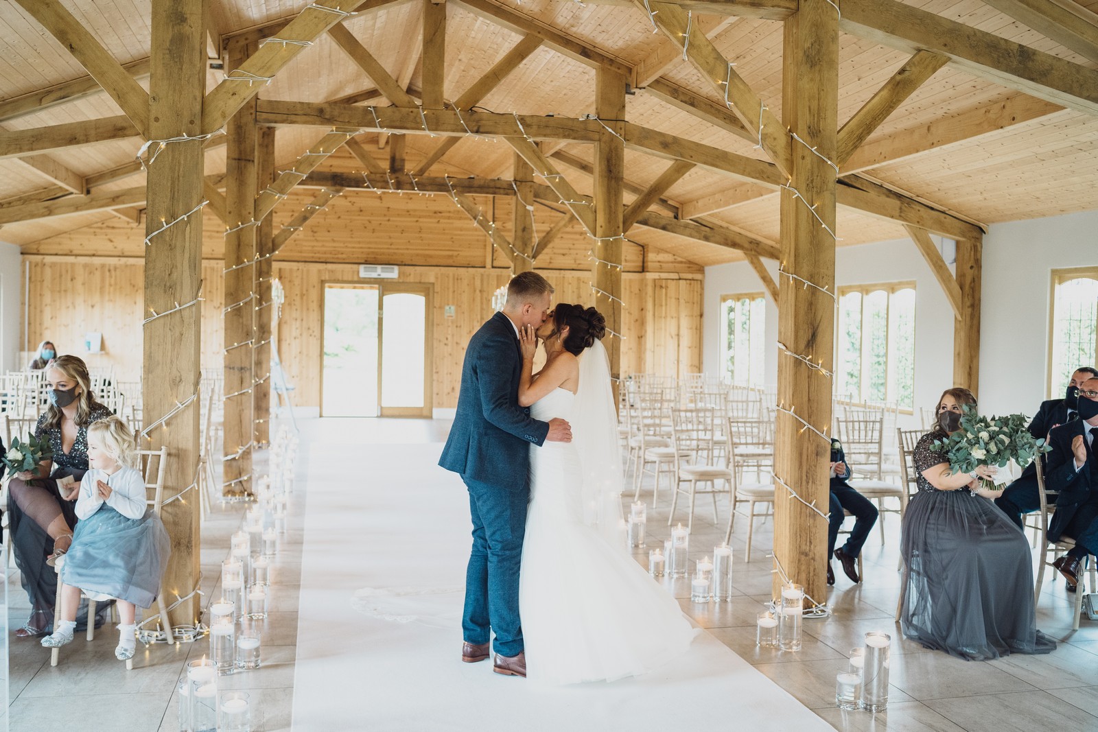 Gemma and Lewis wanted to use local suppliers so I was working alongside some of the best including Lucinka Hodnett as the make up artist and Flossie’s for the gorgeous wedding venue styling. Their 2 boys accompanied them in tiny suits just like Lewis and Gemma looked absolutely incredible in her fish tail dress. Although all of their friends and family couldn’t be there (thanks Boris) they added a video to their package and we were able to zoom the whole ceremony so that even though friends and family couldn’t be there physically they could be there in spirit, watching George and Jacob hand over the rings and listening in when Jacob shouted “GIRAFFE” through the ceremony!