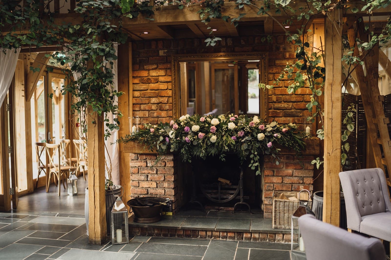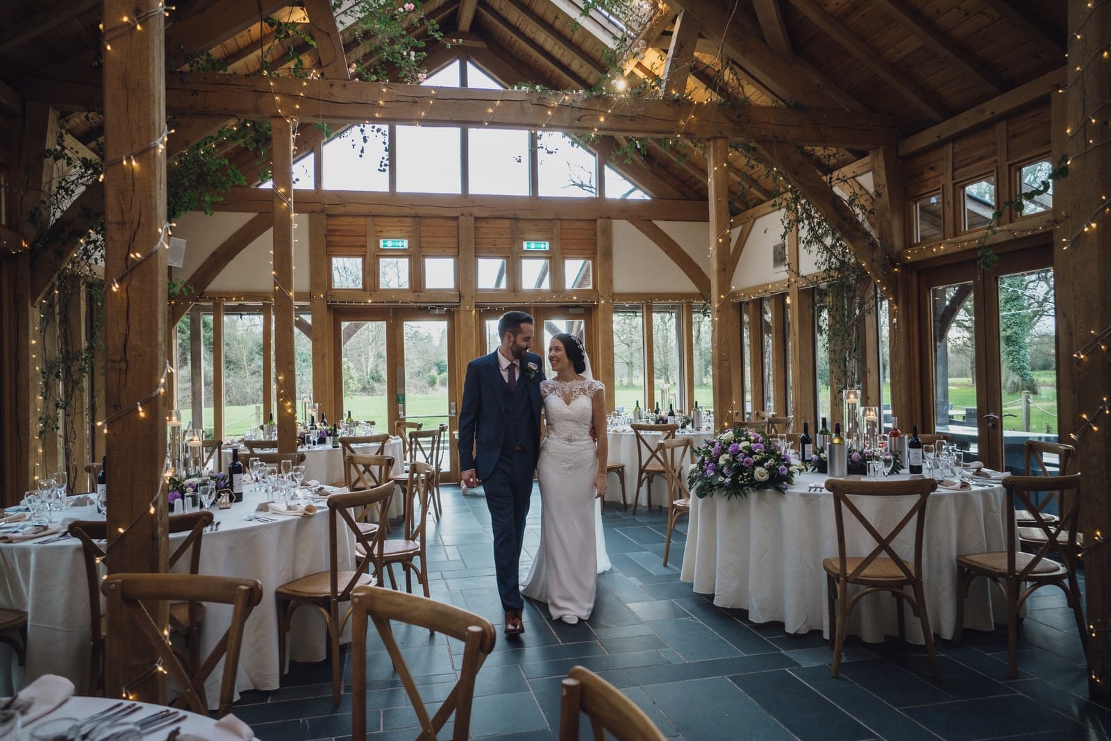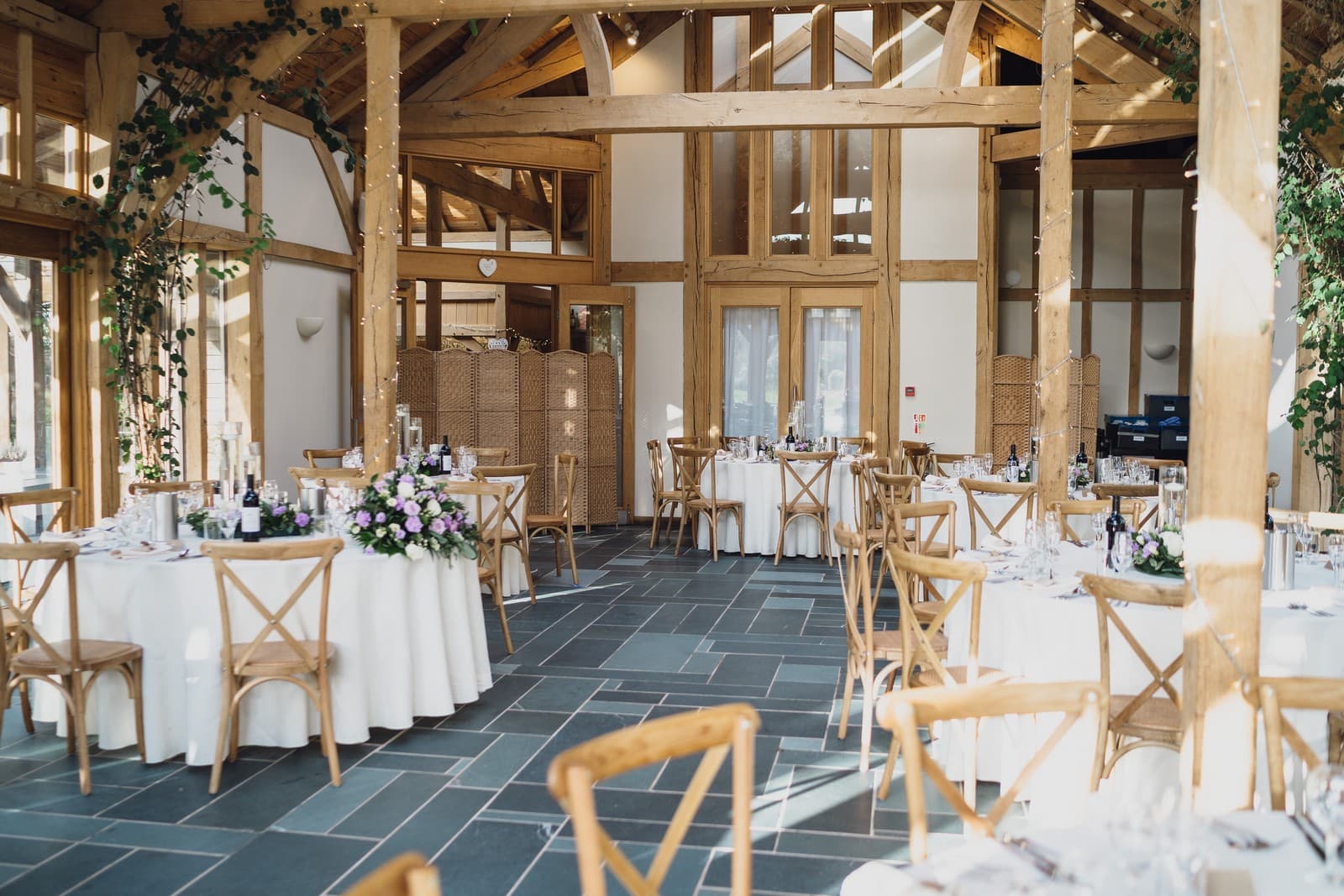 The Oak Tree of Peover is one of the most beautiful barn wedding venues in the country. The 165-acre estate in the heart of Cheshire provides you and your guests complete tranquillity in glorious parkland. Both the Acorn Lounge and Ladybird Room are licensed for civil ceremonies. As your guests start to take their seats, the stunning floor to ceiling windows flood the room with natural light while the high ceilings draw your eyes up to the exposed oak beams. In the warmer months, the Outdoor Pavilion also offers the perfect setting to say, “I do”. Your guests will be seated on handmade wooden benches surrounded by the beautiful surroundings as they await the bridal party. They have a close working relationship with several carefully selected approved caterers. As they all offer their own unique service, they will be sure to match you with the one that best suits your tastes and individual requirements. Surrounded by picturesque countryside the natural beauty of The Oak Tree of Peover is enhanced by the venue’s thoughtful landscaping. While your guests enjoy some refreshments on the stone flagged terrace.
