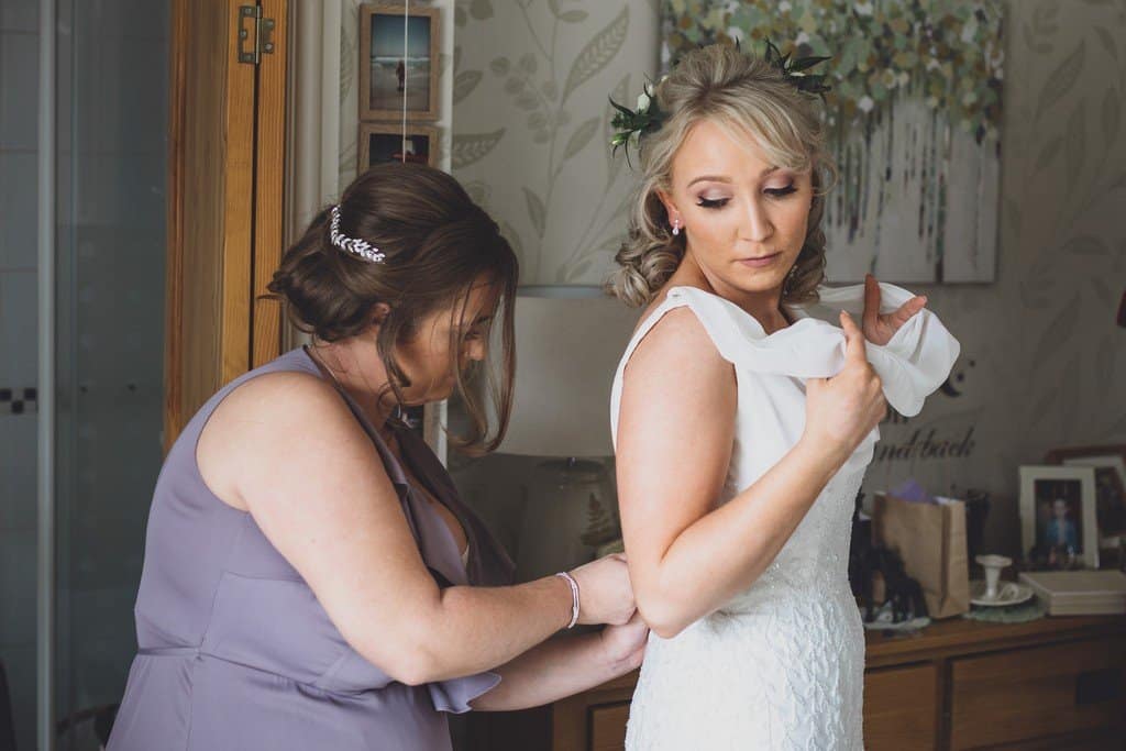 Kim and Robbie’s day was such an amazing wedding to photograph, they are lovely and their families were wonderful too. I was in love with all the rustic details and the setting, the Oak Tree Peover, is just stunning! We started off at Kim’s, getting ready with the whole bridal party. It was a whirlwind of flowers, hair and make up prep, a drop of bubbly, matching floral dressing gowns, excited flower girls and just a wonderful buzz of excitement and wedding activity. It is one of my favourite parts of any wedding day, just the anticipation of finally everything coming together.