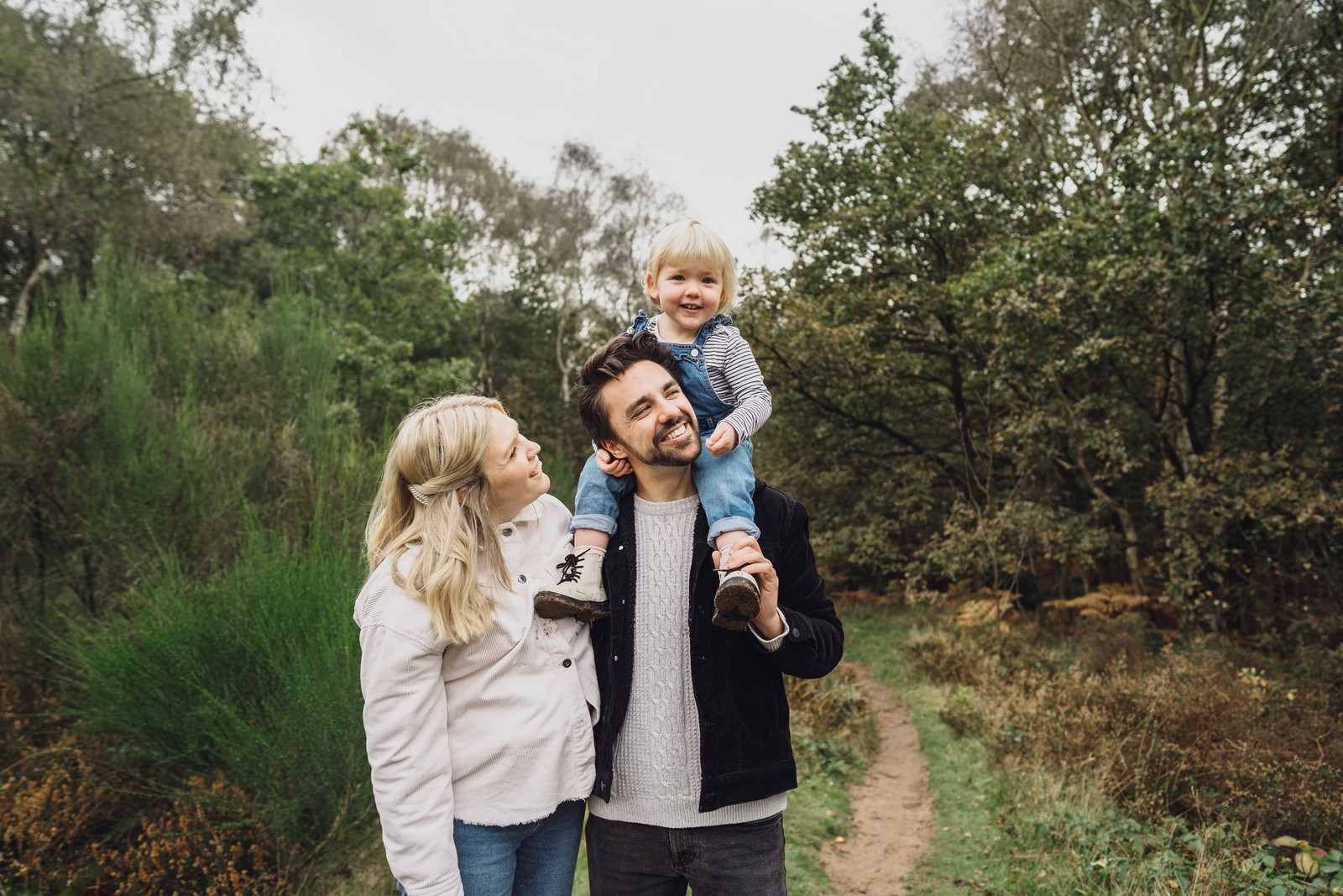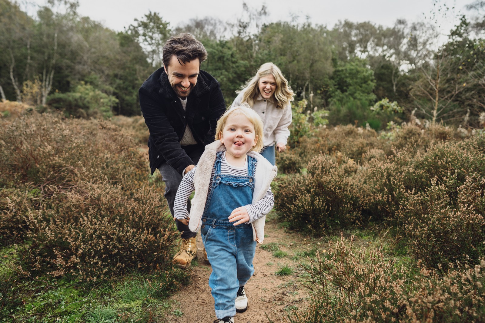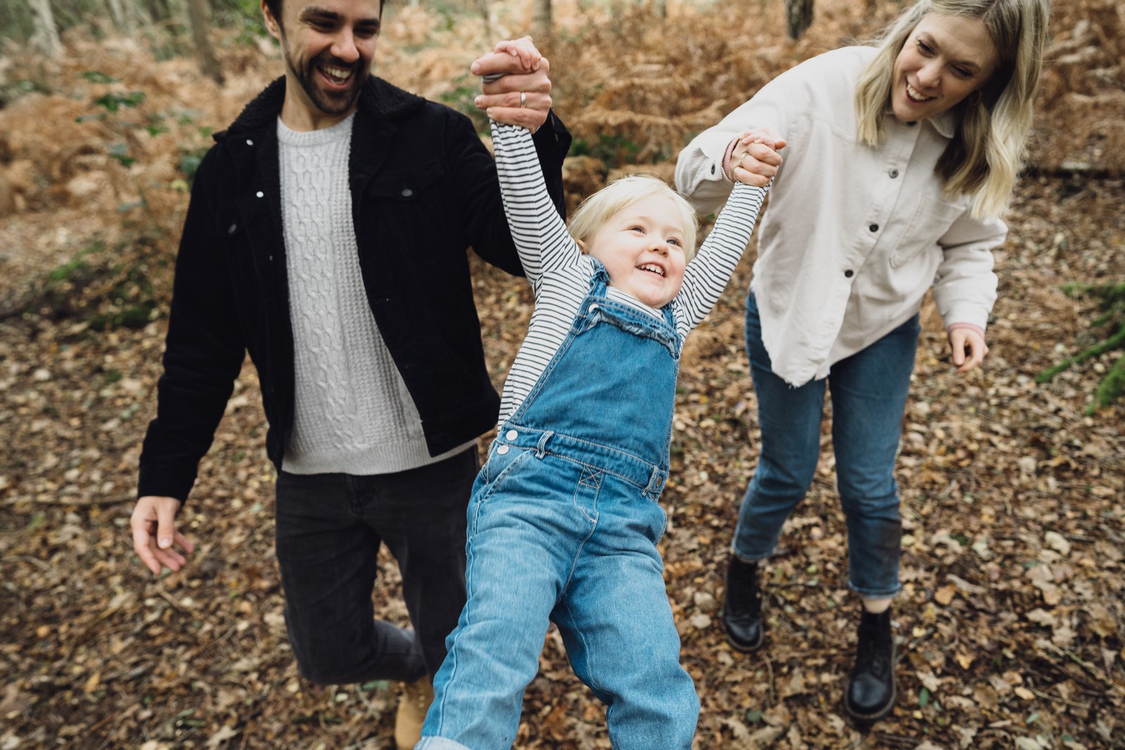 I love getting that essence of a family captured, the little personalities of the kids, whether it’s carrying an extra large stick around for the whole shoot or jumping in every puddle they see, I’ll be there to capture it. I love encouraging the kids to play and be kids and you won’t find lots of posing on your shoot with me. There was plenty of space for Luna to run around and we got some gorgeous shots of her on her own and with mum and dad. The ferns were in full bloom and the greens and autumnal colours were the perfect backdrop.
