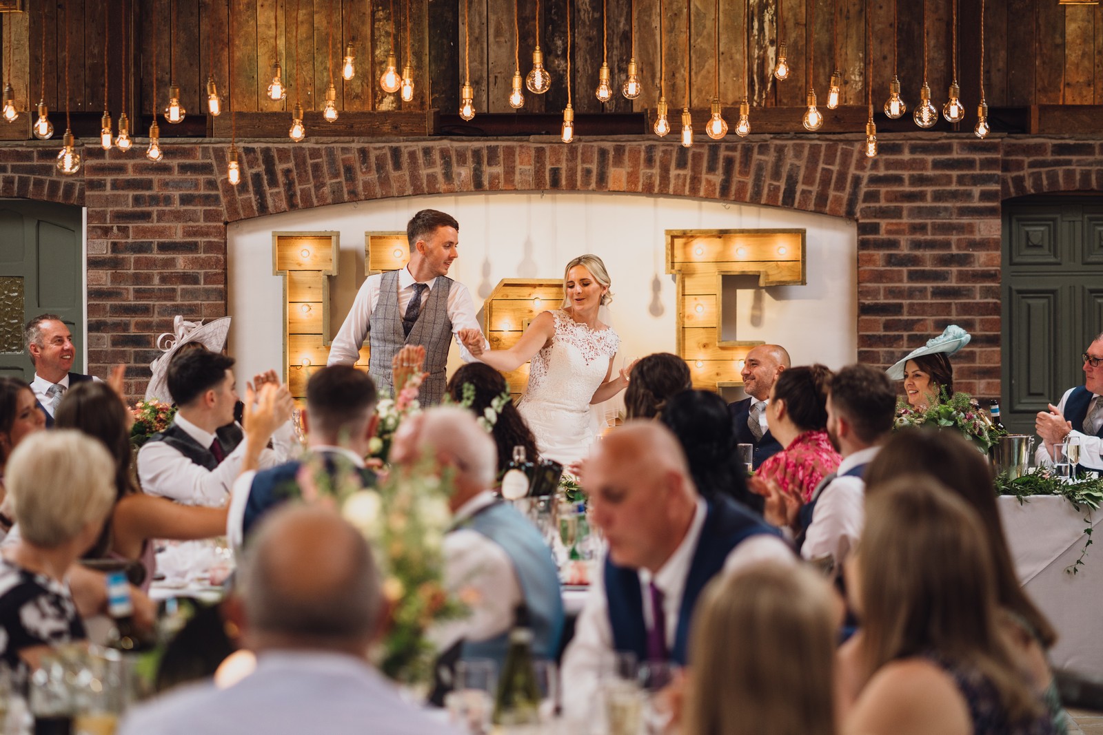 Hannah and Eden’s wedding was such a blast, Owen House wedding barn was the perfect venue for this couple. A rustic barn with fairy lights galore and beautiful surrounding Cheshire countryside it was just what Hannah and Eden were looking for and we were able to get outside for my favourite part of the day – golden hour for some classic sun kissed portraits. The reception room looked stunning and did you see that cake? What an incredible day!