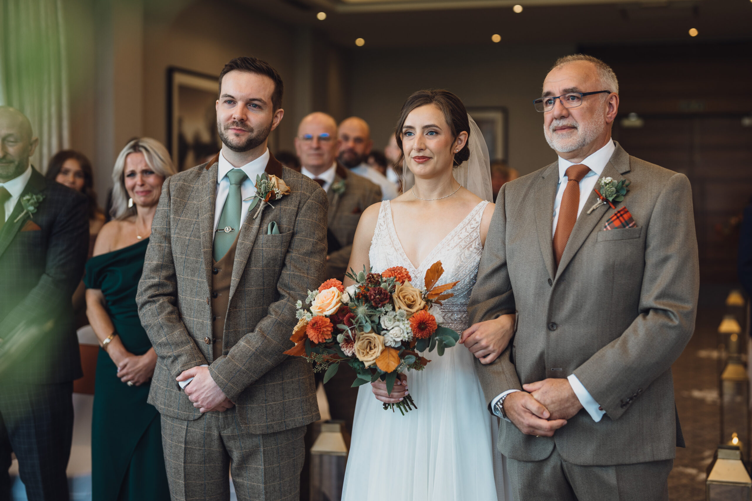We love the colourful warm autumn tones at this time of year and wanted to bring these into our big day as much as we could. The colours also tied in really nicely with another important element which was Lorna’s grandad’s tartan who is sadly no longer with us.