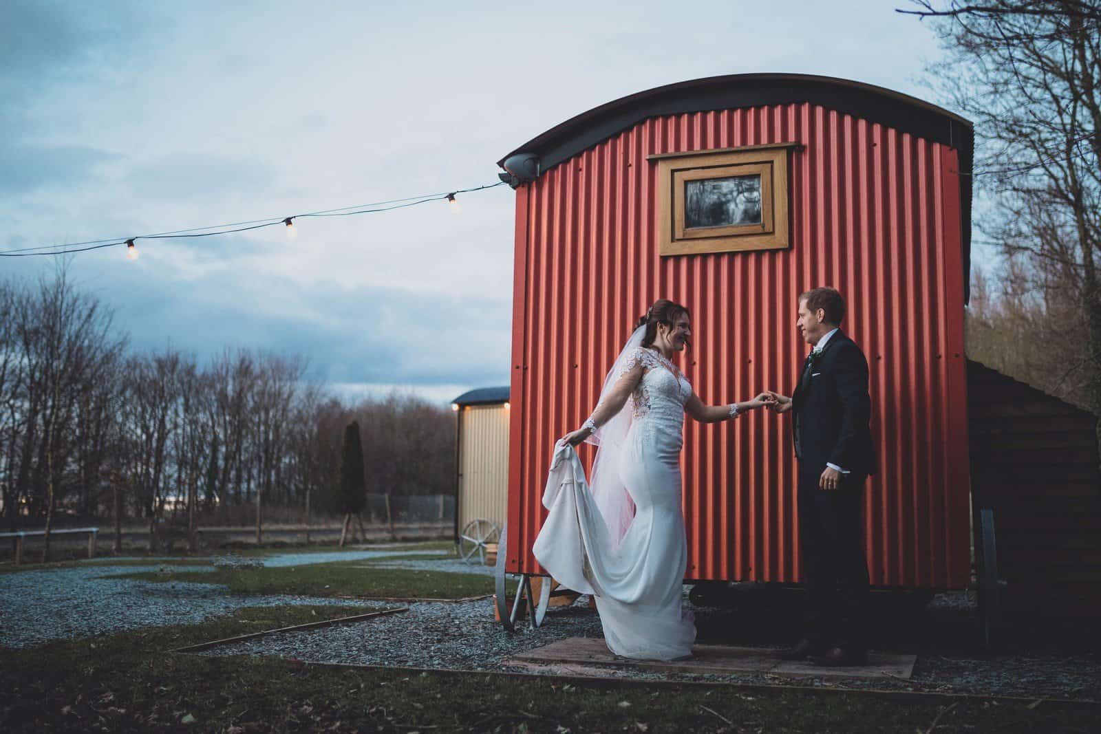 It’s really atmospheric and in the ancient woodland that surround it is a cool village of shepherd huts to stay in, all complete with camp fires and festoon lighting! The little Shepherds huts also made an awesome backdrop for some great shots of the couple too! It’s a totally unusual venue, I properly fell in love with Salmesbury Hall and how Izzy and Martin put their own stamp on it for the day.