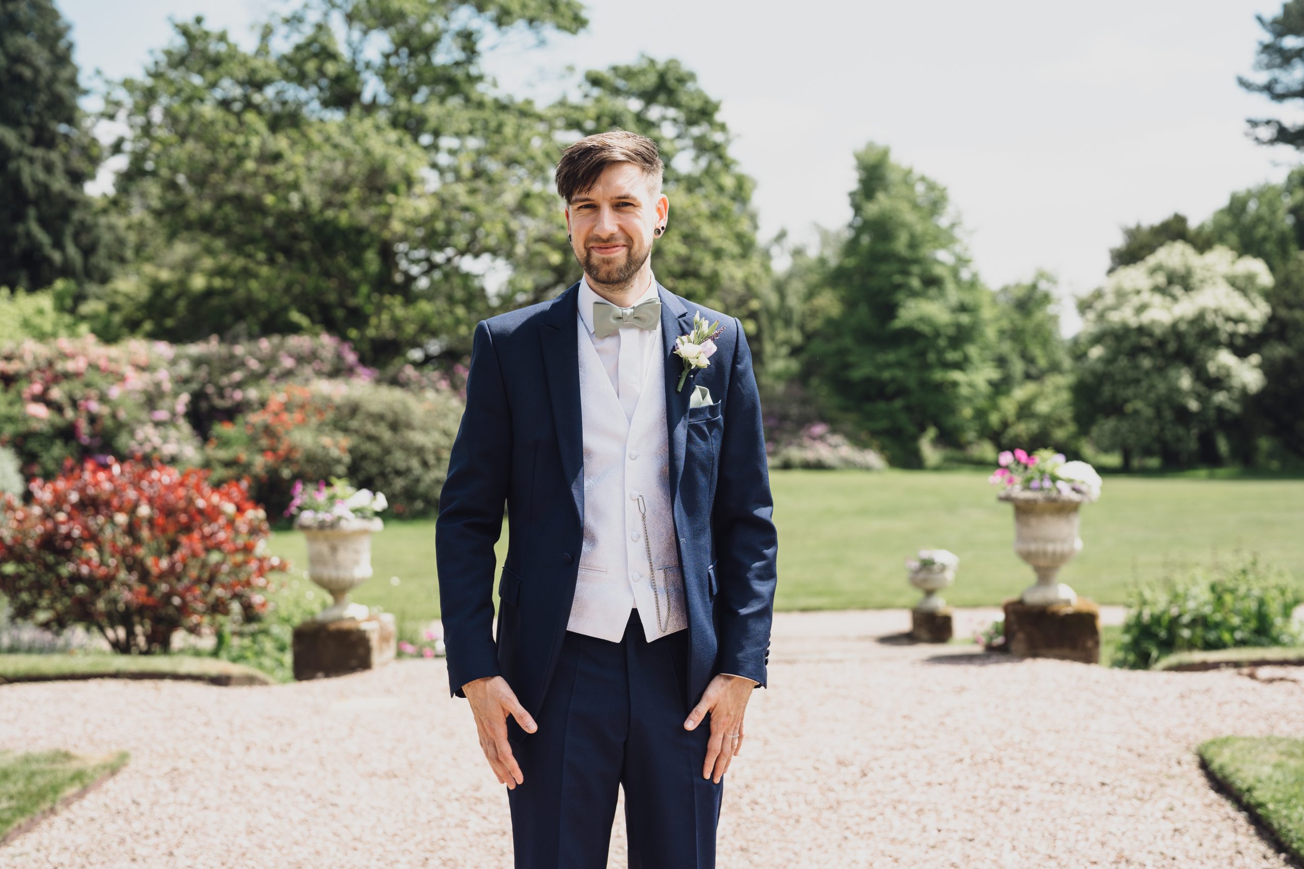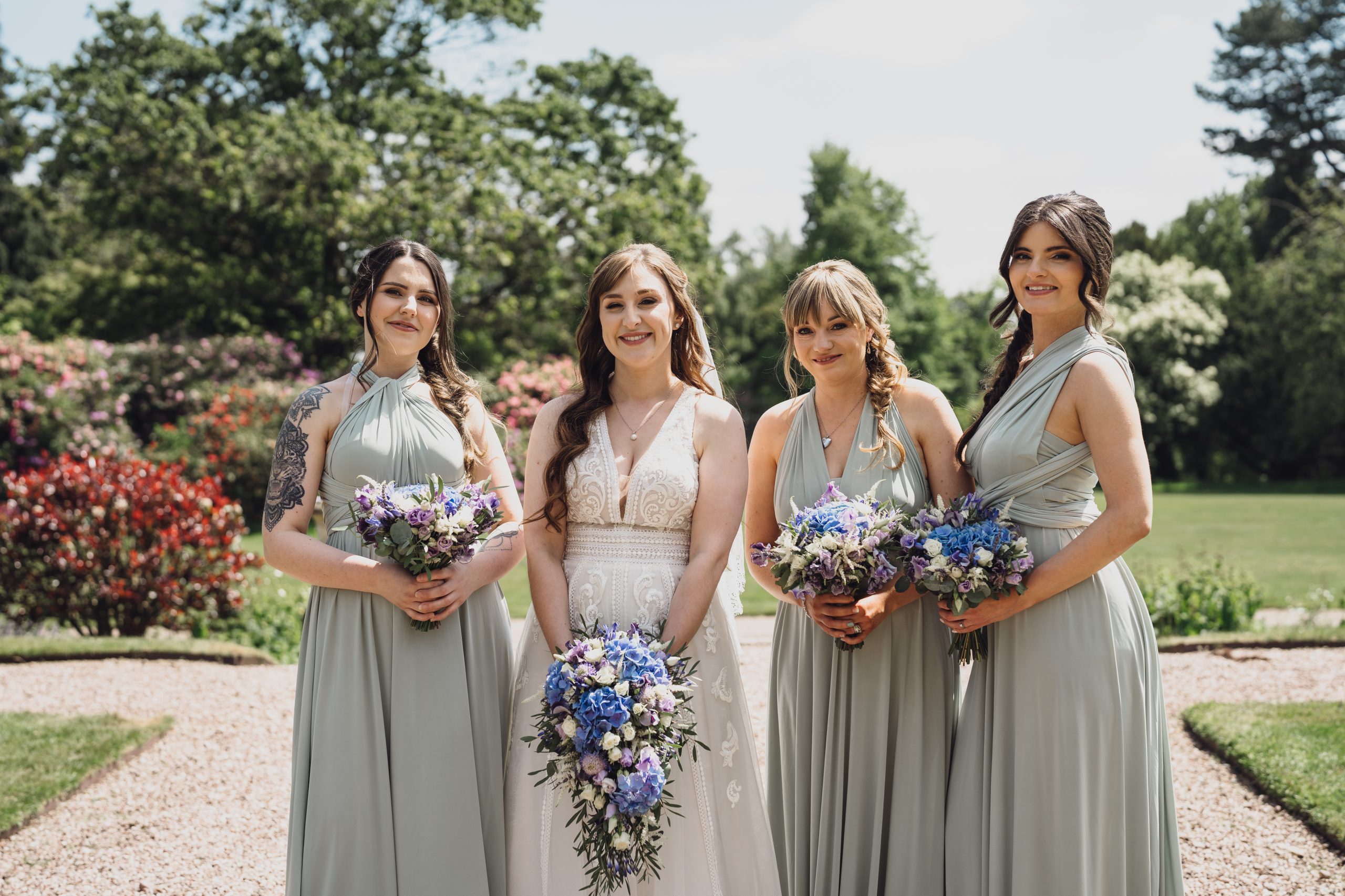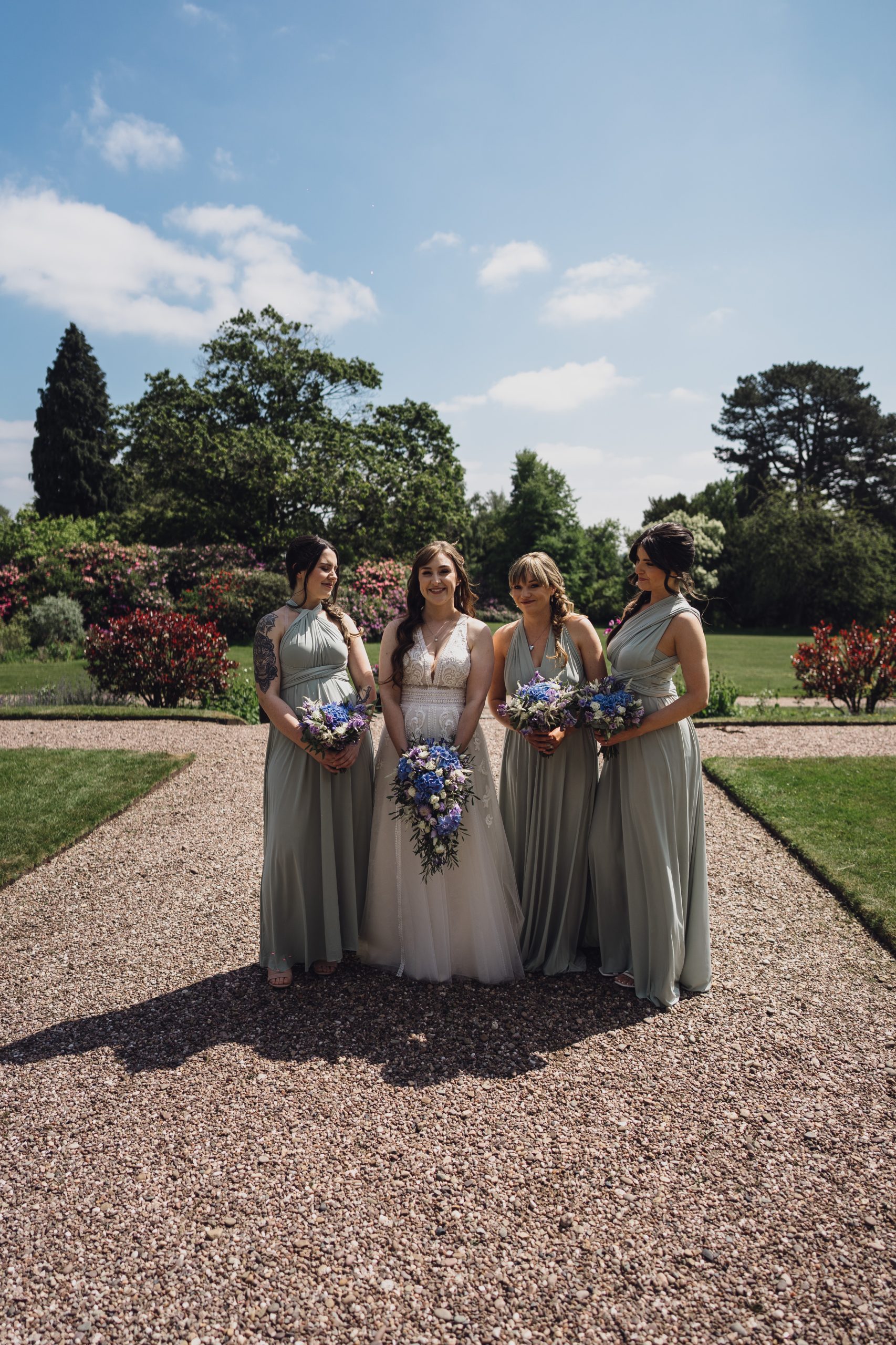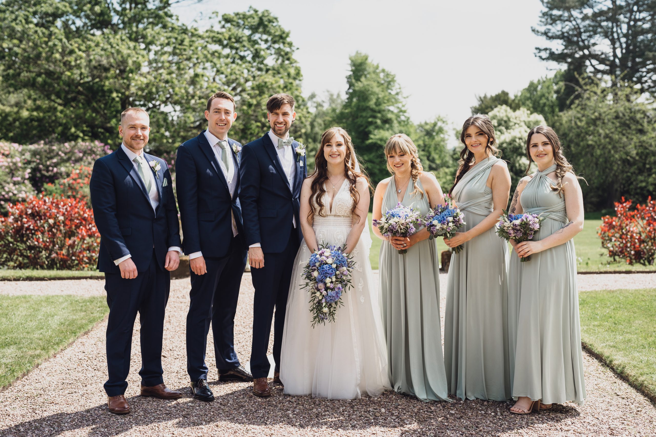 We wanted an intimate, relaxed feel to the wedding with a touch of magic. Sandon Hall brought the magic with its stunning grounds and exclusivity. Lavender and eucalyptus were the flowers and colours for the theme with Lavender being Rachel’s late Nan’s favourite flower. The sage green tied in with a late spring/early summer wedding.