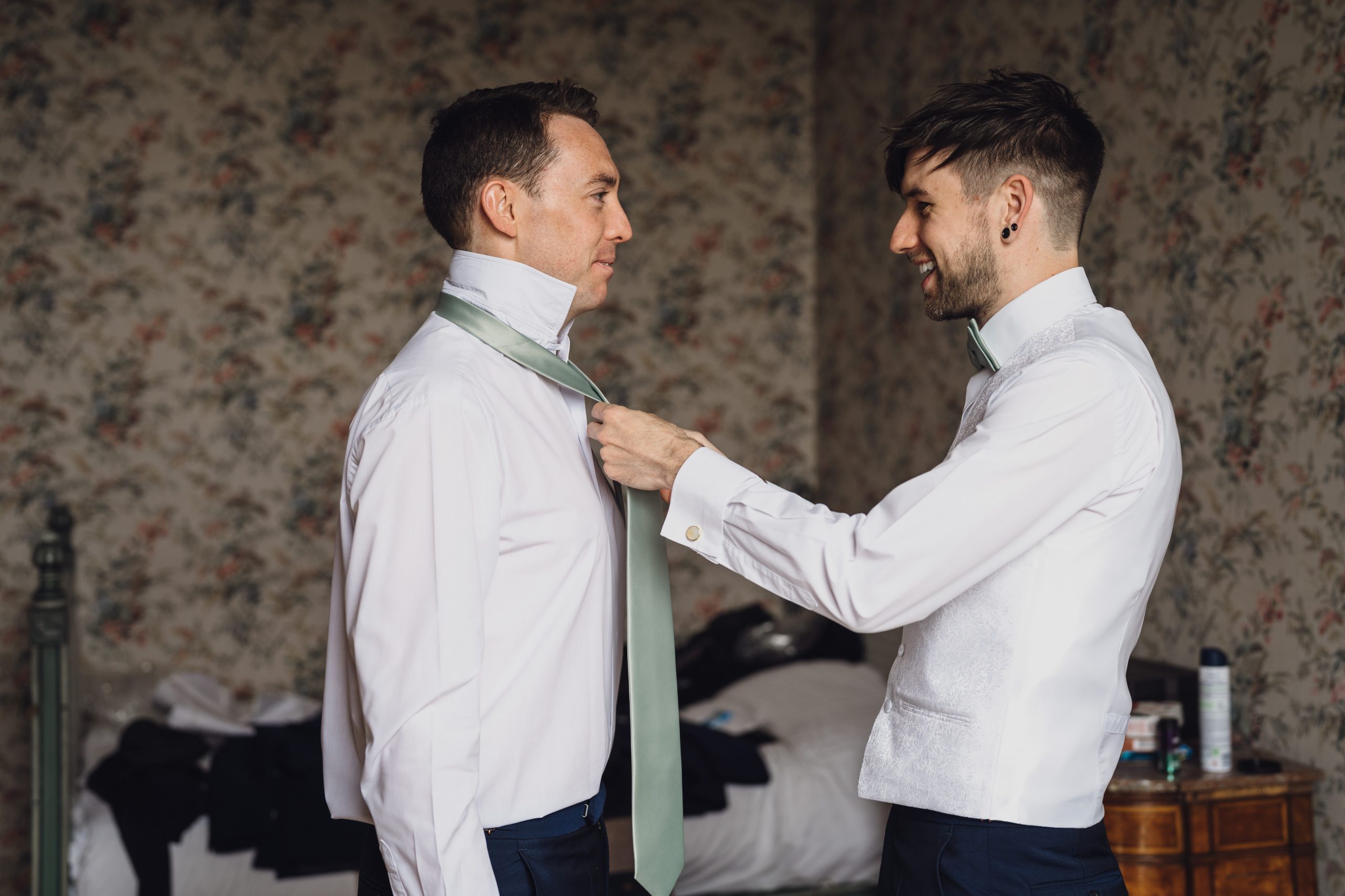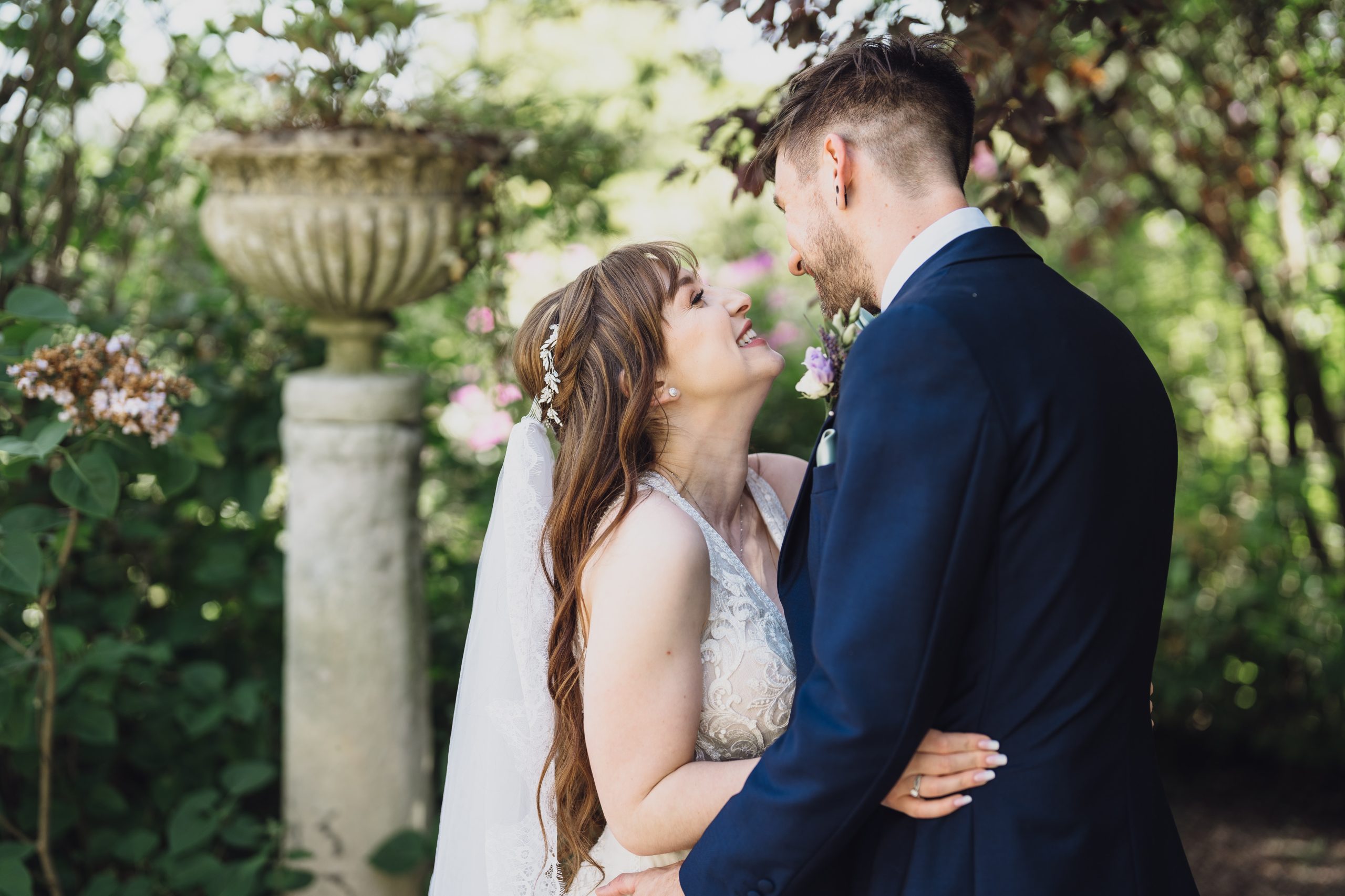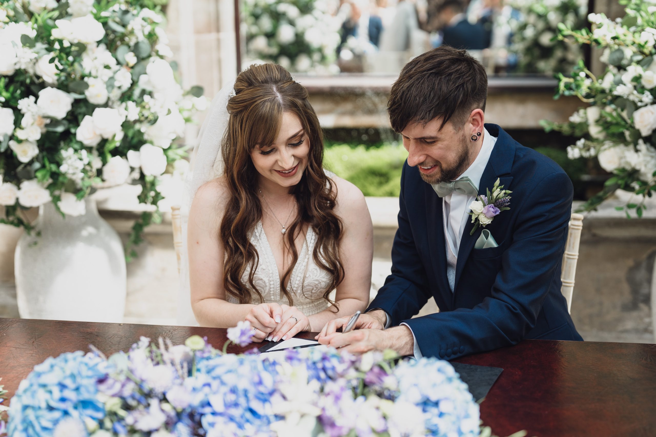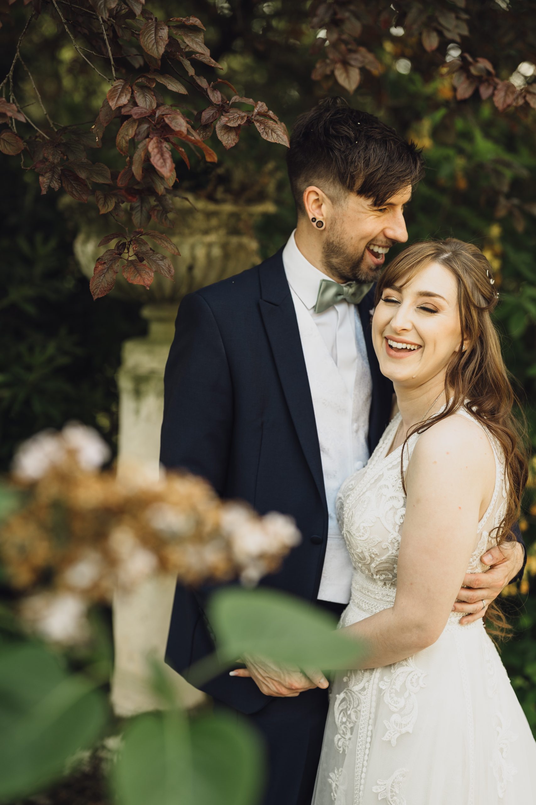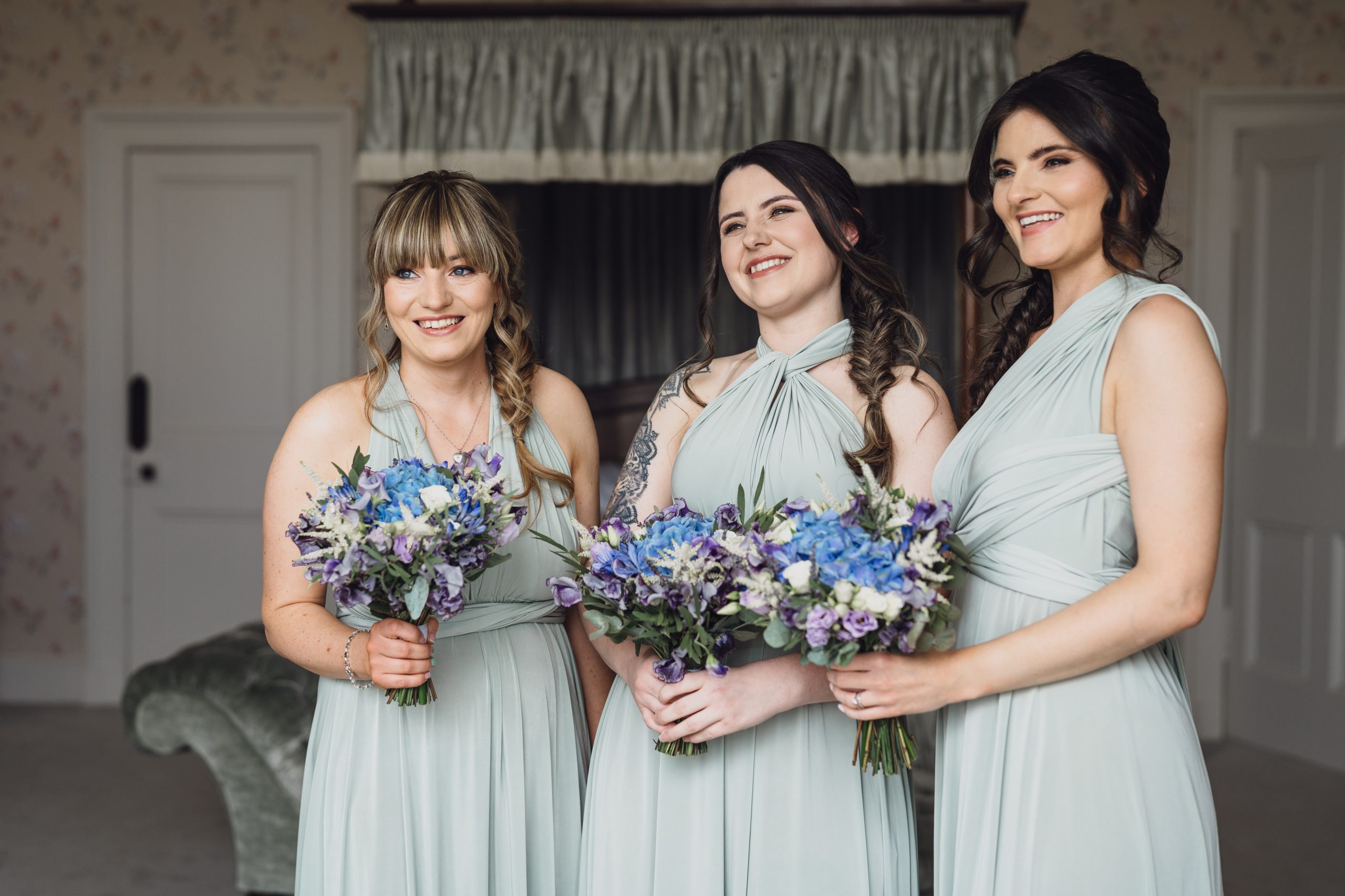 We wanted an intimate, relaxed feel to the wedding with a touch of magic. Sandon Hall brought the magic with its stunning grounds and exclusivity. Lavender and eucalyptus were the flowers and colours for the theme with Lavender being Rachel’s late Nan’s favourite flower. The sage green tied in with a late spring/early summer wedding.
