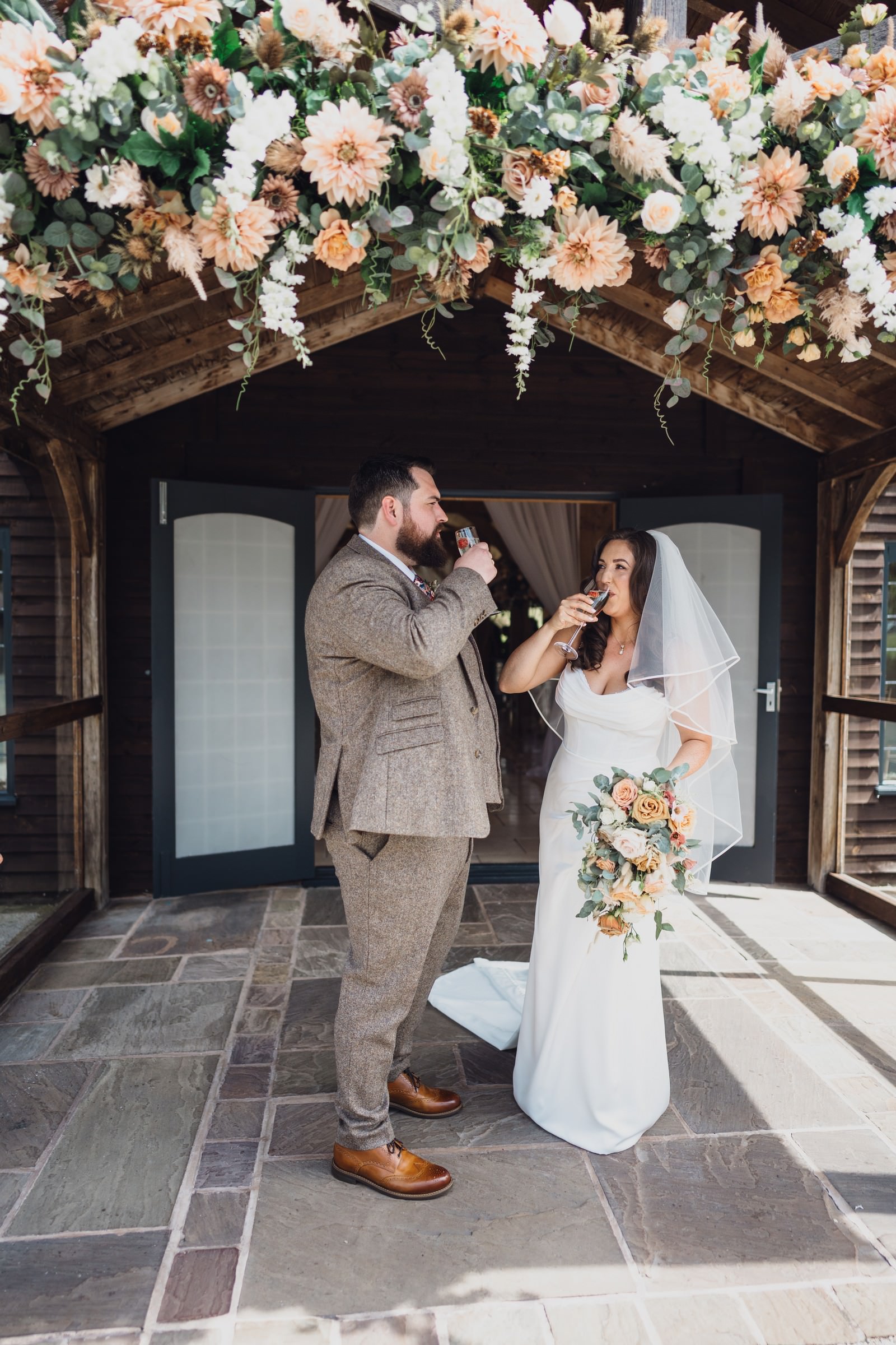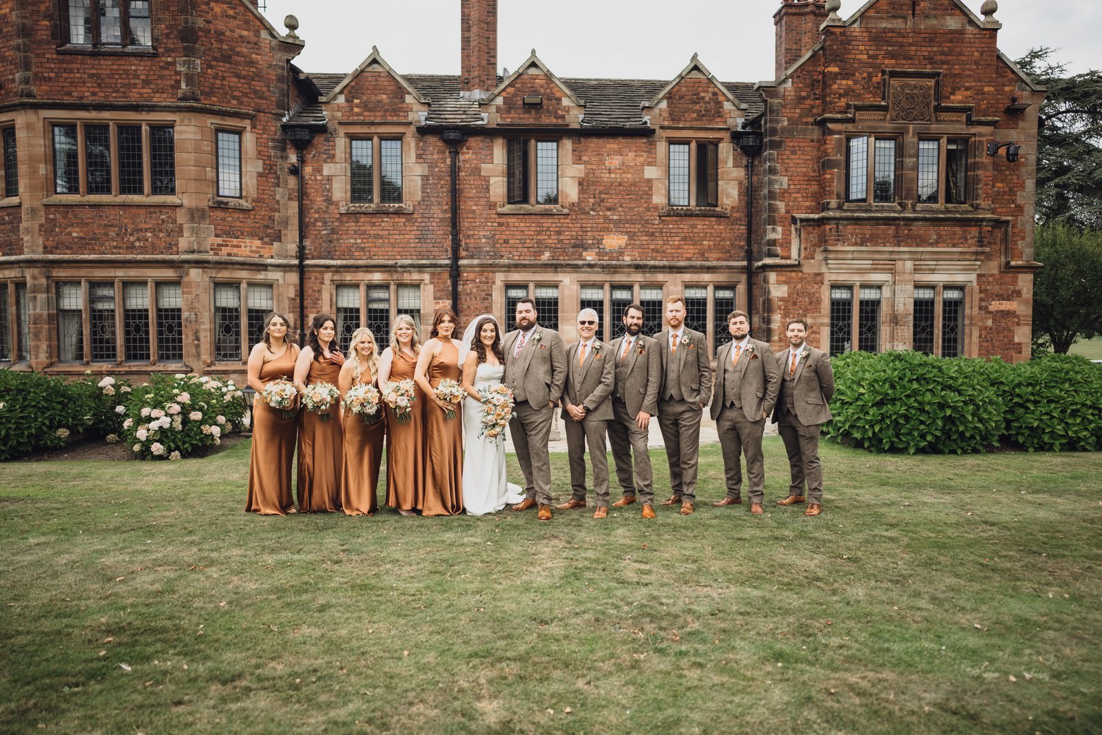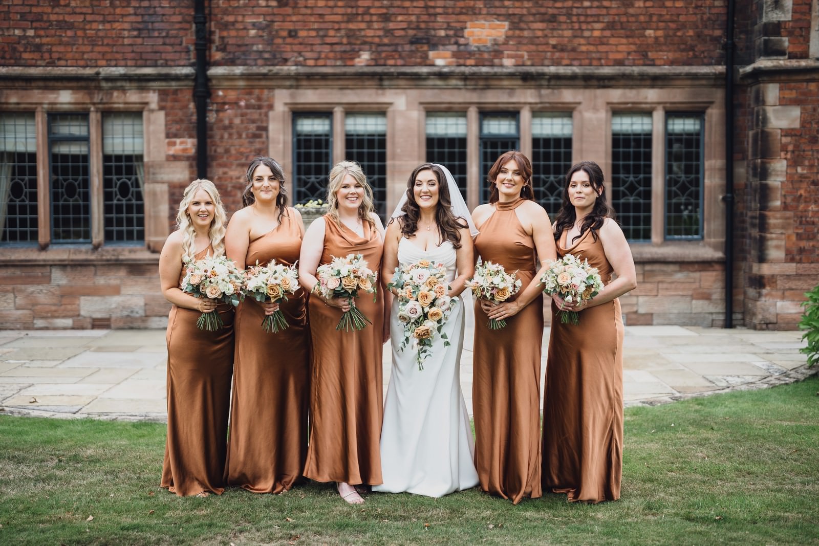 Colshaw have an onsite business called “Floral Decor” – full of beautiful faux arrangements with a variety of colour schemes. When we first visited, they asked about our colour scheme… to which, again, we had no idea! Josh knew he didn’t want all white… so we landed on a beautiful combination of peaches, creams, oranges and toffees. A little on the autumnal side given it was a summer wedding, but we both loved it, so committed. Josh, by chance, wanted a brown suit, and I wanted my bridesmaids in a toffee/rust/burnt orange. I had no idea how well the colours would come together but I am OBSESSED with how beautiful everything looked together!!