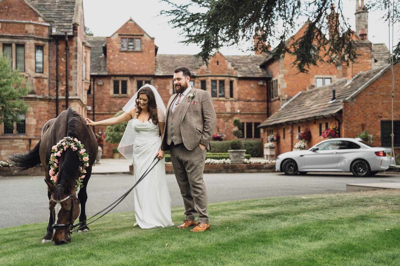 Steph & Josh’s wedding at Colshaw Hall was everything they hoped it would be – fun, relaxed, and truly unforgettable. After meeting as students back in 2010, growing up together, building a life filled with love (and a dog, a horse, and plenty of laughter), and a fairytale proposal overlooking Florence, their wedding day felt like the perfect celebration of their journey. Set within the stunning Walled Gardens on a summer Monday, surrounded by the people (and animals!) they love most, the day was a beautiful blend of heartfelt emotion, cheeky humour, and effortless joy – a true reflection of Steph and Josh as a couple.