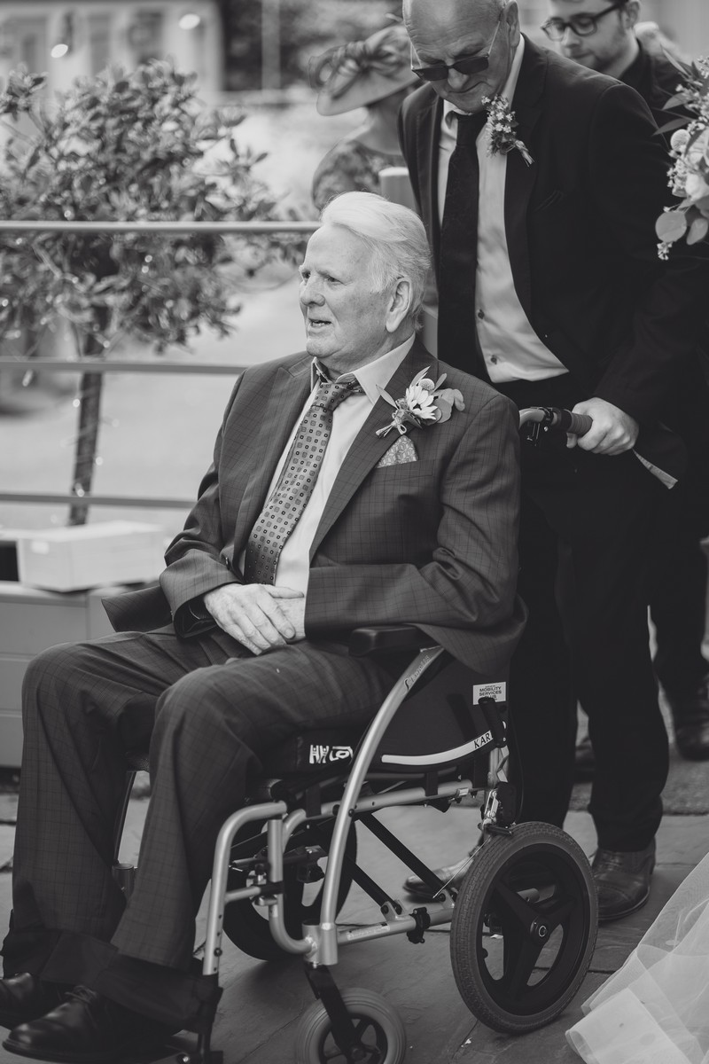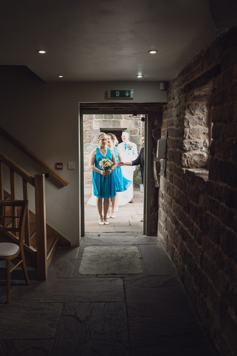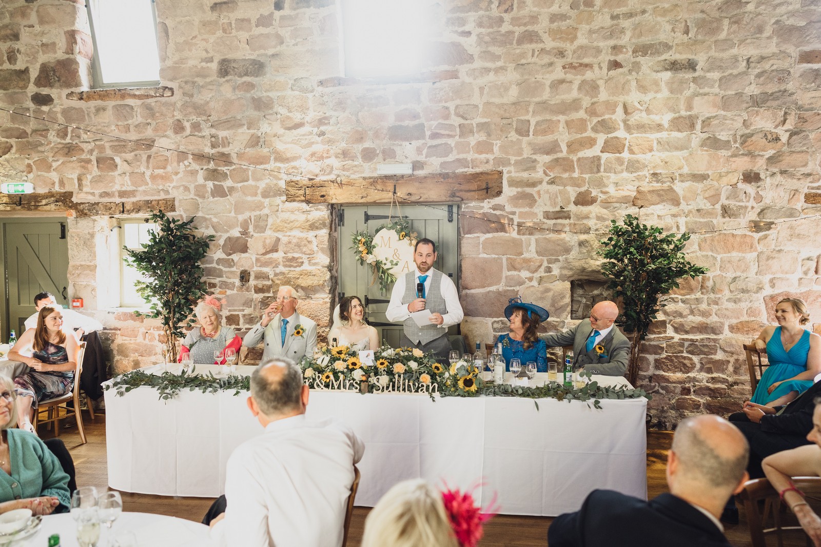 Our friend Mark announcing us into the wedding breakfast so loudly it stopped the kitchen staff working and made a guest almost fall over his chair