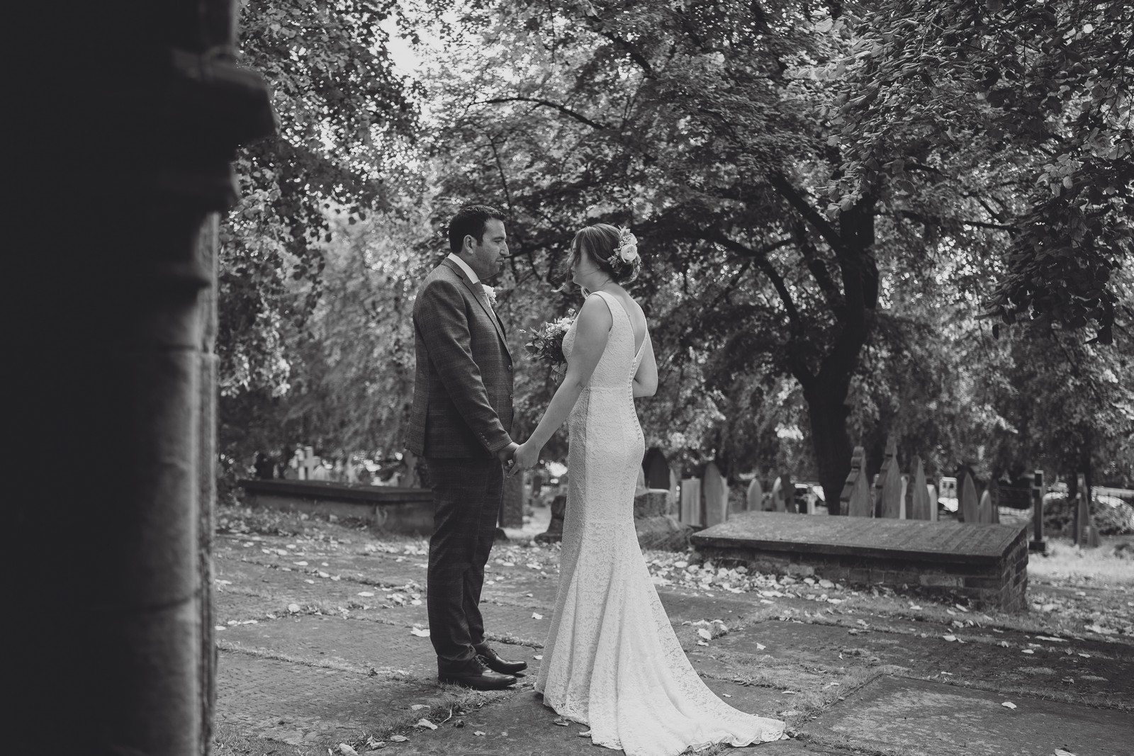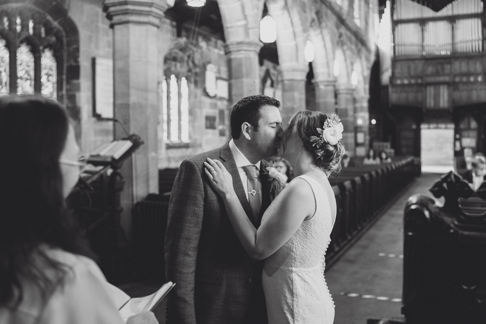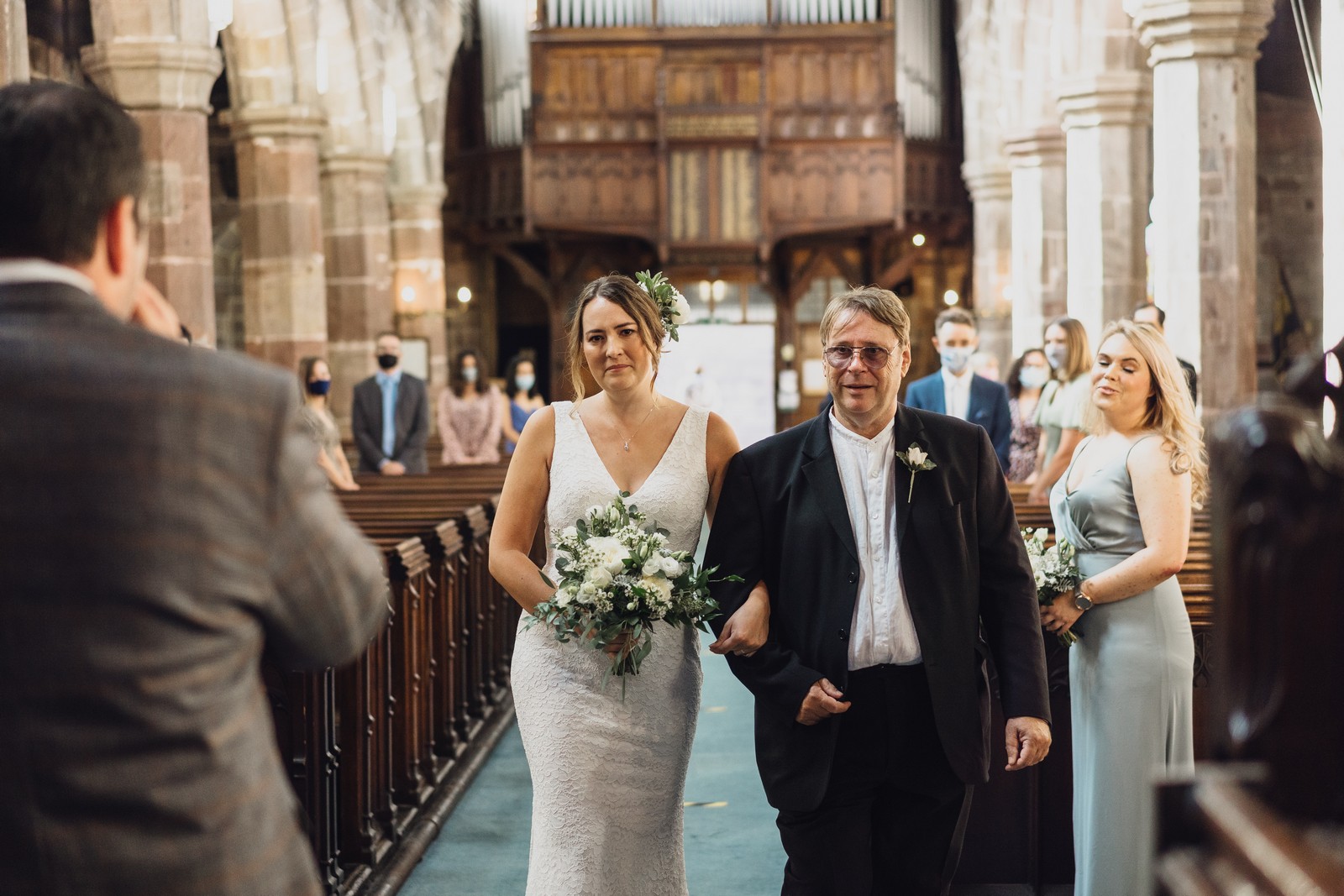 The couple who married at St Mary’s church in Sandbach were keen to do all the normal wedding traditions despite the pandemic so we did an epic confetti throw outside the church. They arrived at The Old Doghouse Barn which is part of the Three Greyhounds pub for their reception in a vintage Bentley which looked so elegant against the beautifully rustic venue in Allostock near Knutsford. There was plenty of room inside for Charlotte and Phil’s friends and family to celebrate their union and I loved the dried flower garlands that adorned the brick arches and exposed beams.
