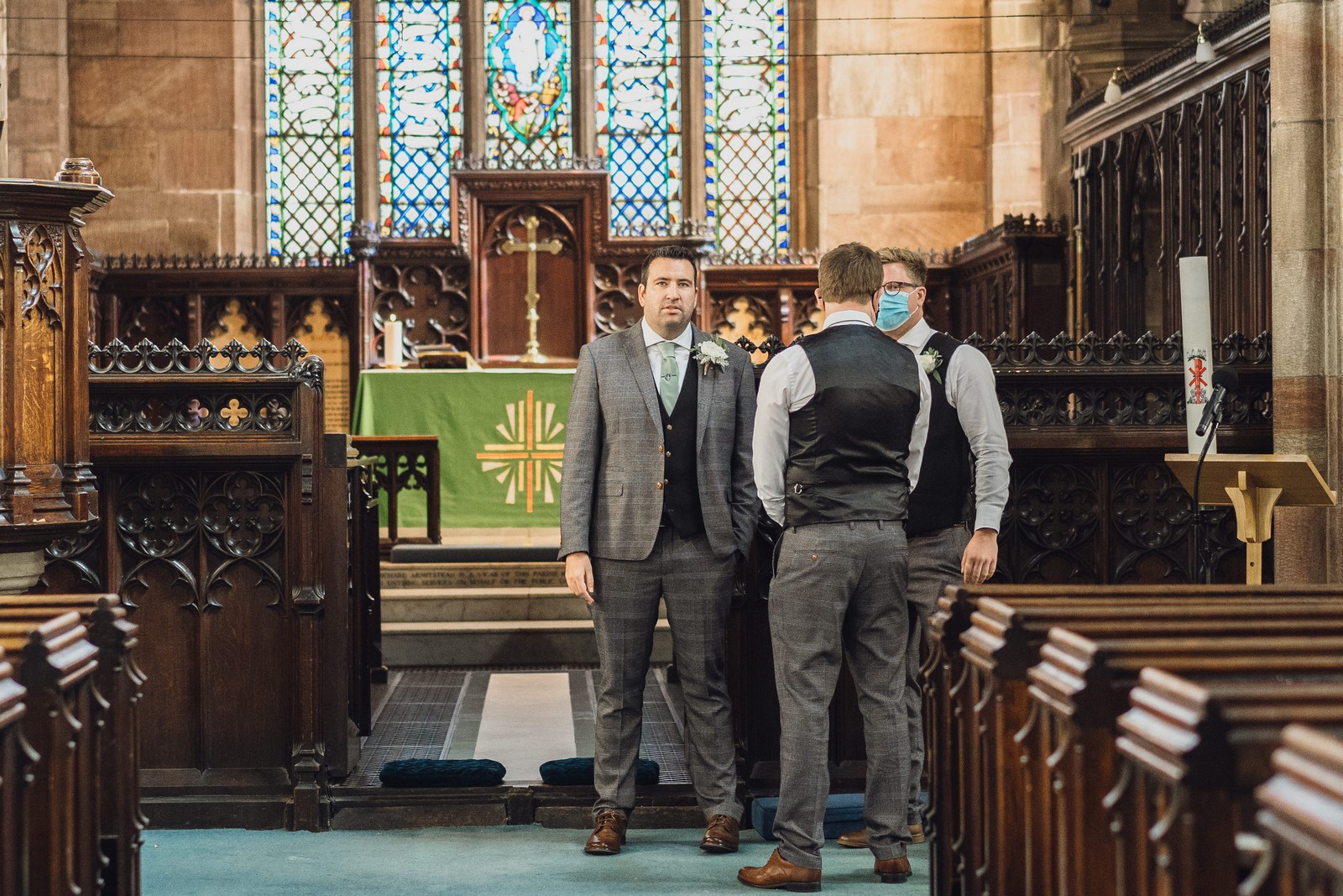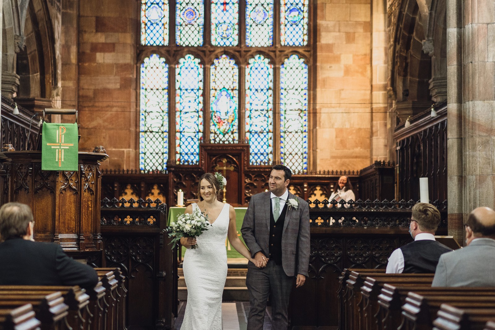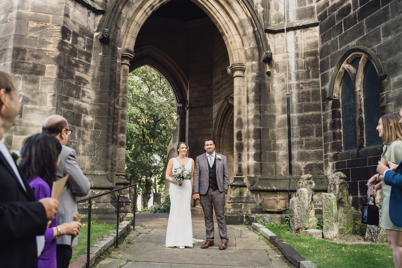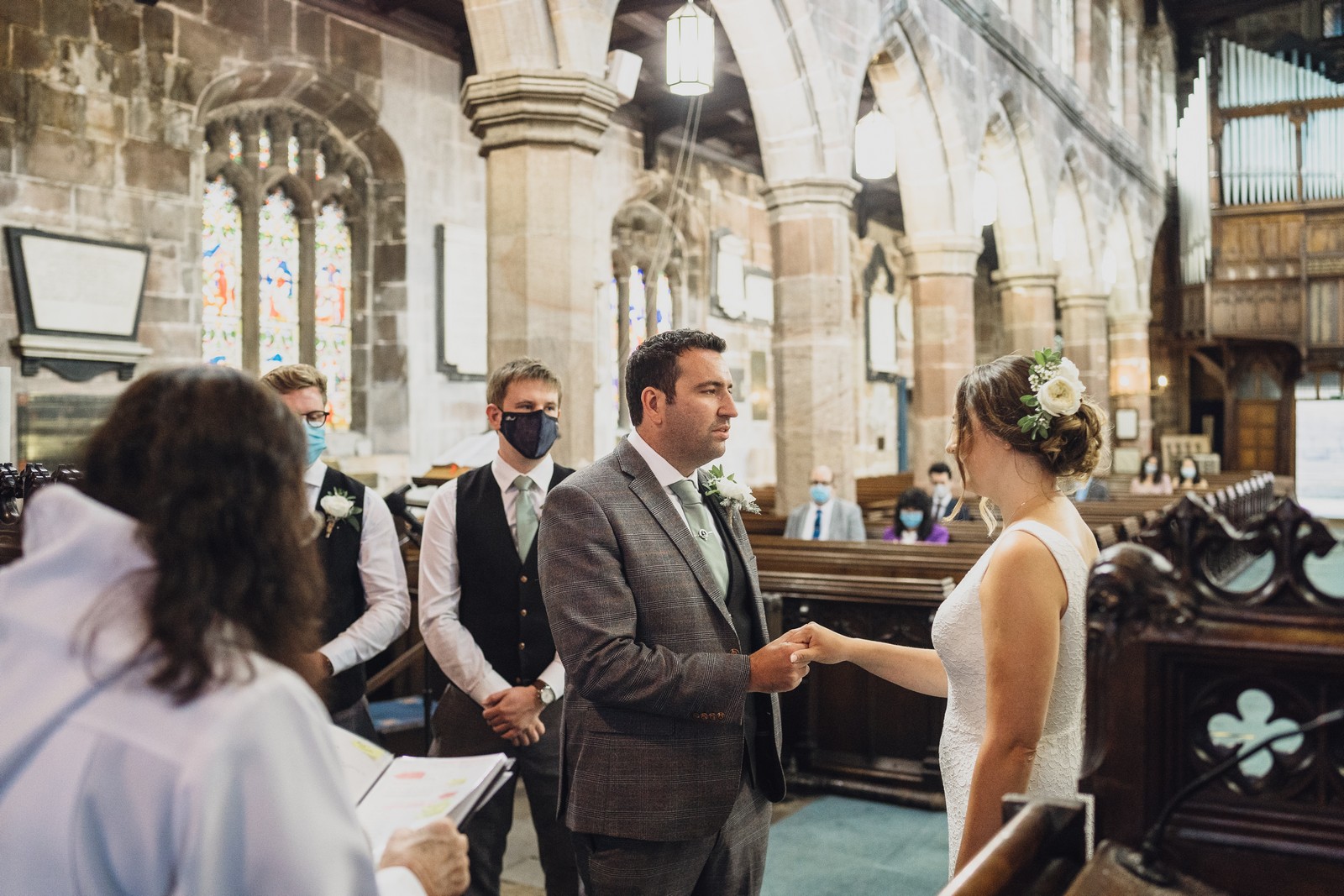 The couple who married at St Mary’s church in Sandbach were keen to do all the normal wedding traditions despite the pandemic so we did an epic confetti throw outside the church. They arrived at The Old Doghouse Barn which is part of the Three Greyhounds pub for their reception in a vintage Bentley which looked so elegant against the beautifully rustic venue in Allostock near Knutsford. There was plenty of room inside for Charlotte and Phil’s friends and family to celebrate their union and I loved the dried flower garlands that adorned the brick arches and exposed beams.