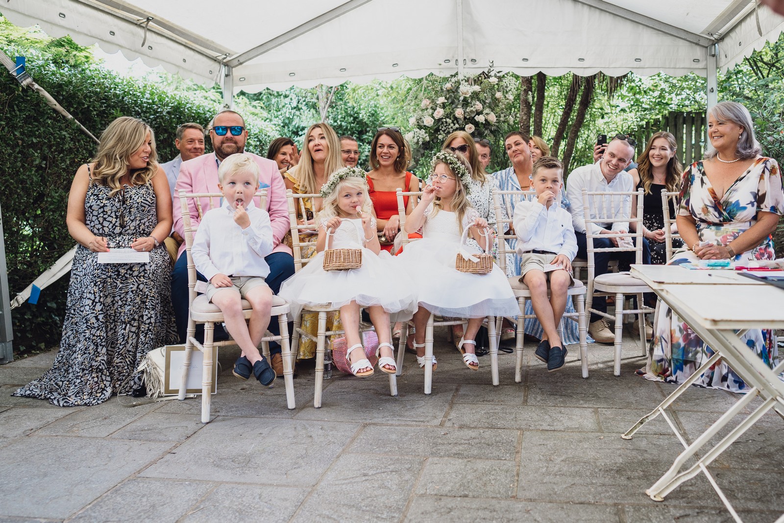 Victoria and Rob’s kids provided much entertainment especially when their three year old decided to give Mummy his finished lollipop stick mid ceremony and they looked oh so cute alongside the other kids in their pretty dress and little shirt and shorts. I loved capturing all the family laughing and celebrating together on such a picture perfect day. The sunshine really was glorious and made the greenery covered venue all the more beautiful.
