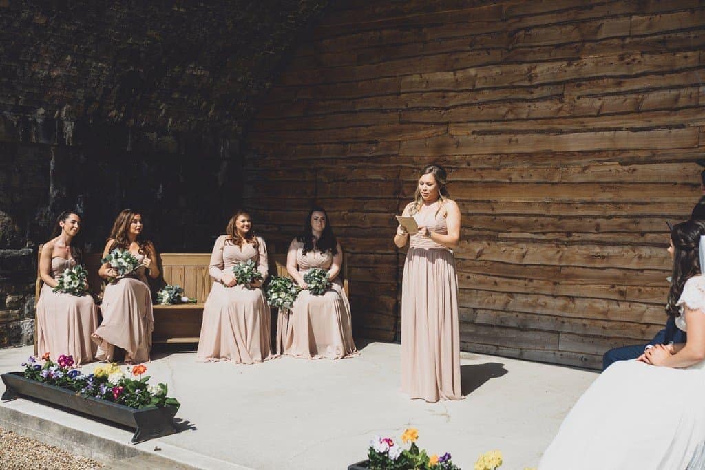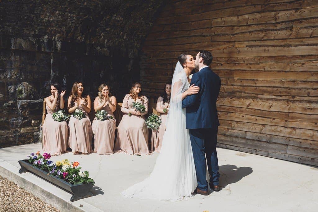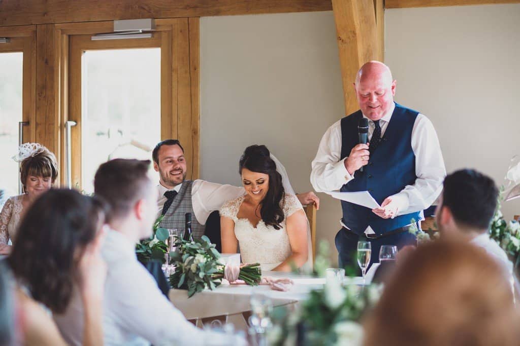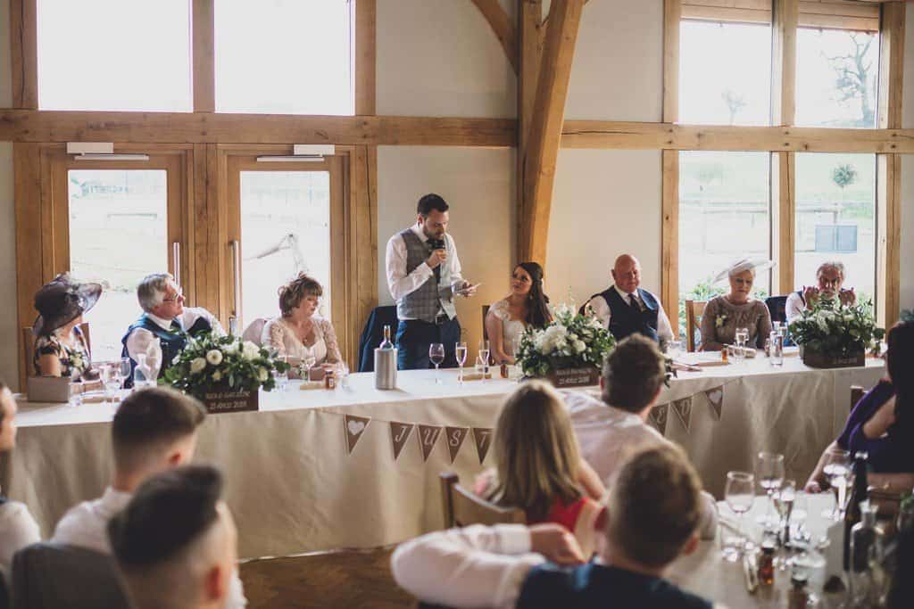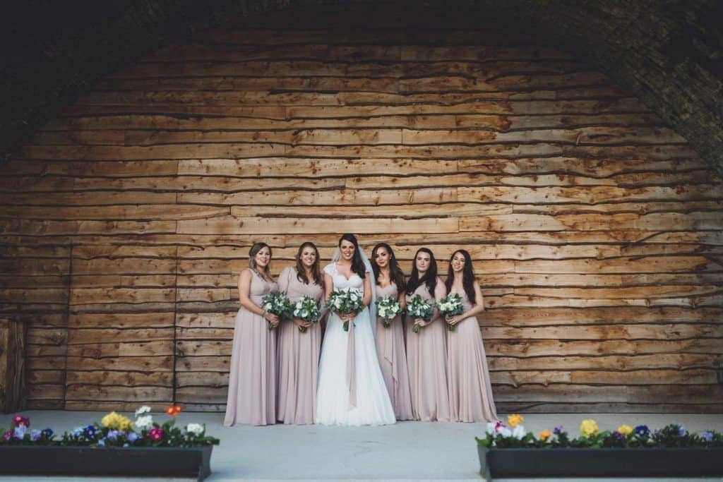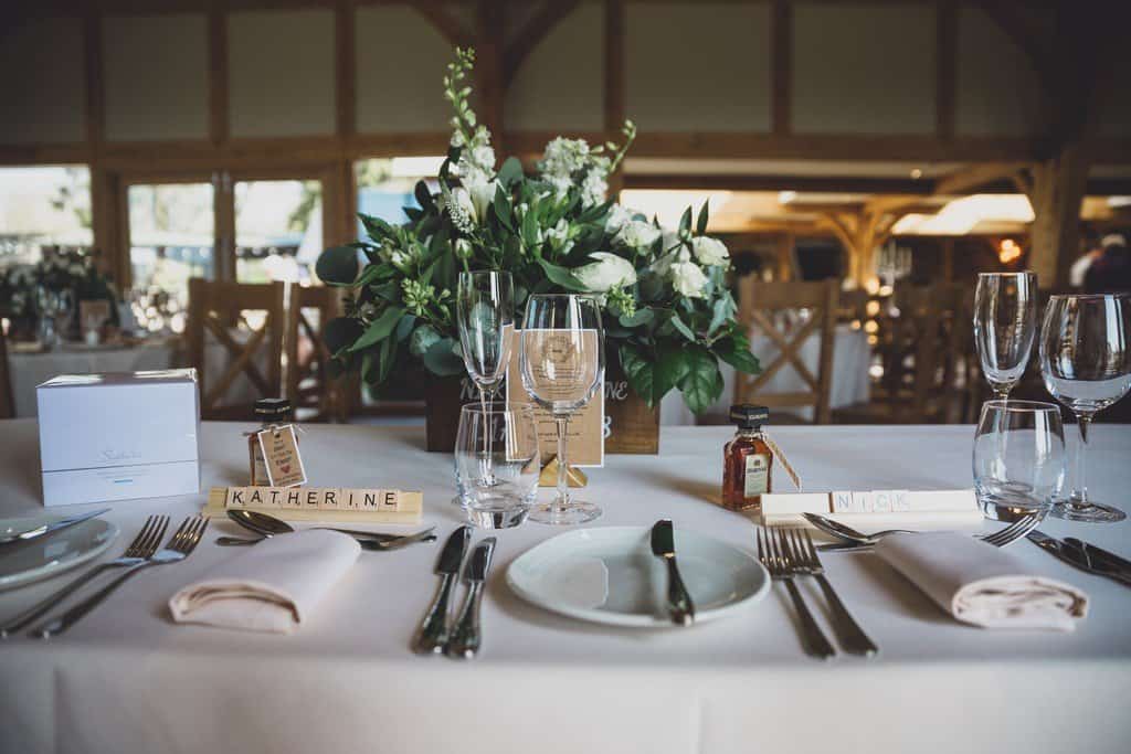 Tower Hill Barns is such a beautiful wedding venue in its own right and all it needed was a few personal touches to make it look even better. They used scrabble tiles as place names to reflect their love of board games and Katherine’s flowers, blush pink bridesmaid’s dresses and elegant lace bodiced wedding dress fitted in with the rustic theme perfectly.