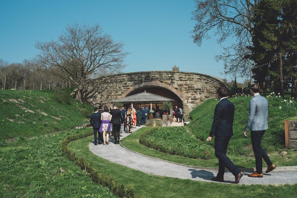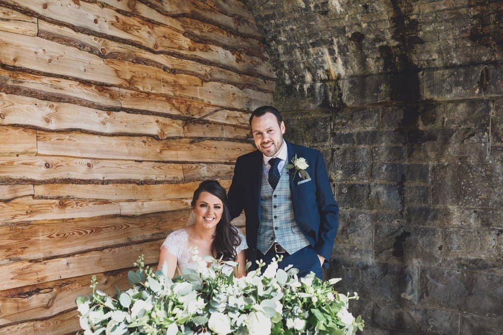 Suited and booted in a blue suit and checked waistcoat Nick met Katherine under the railway arches where they said their vows in front of their family and friends.