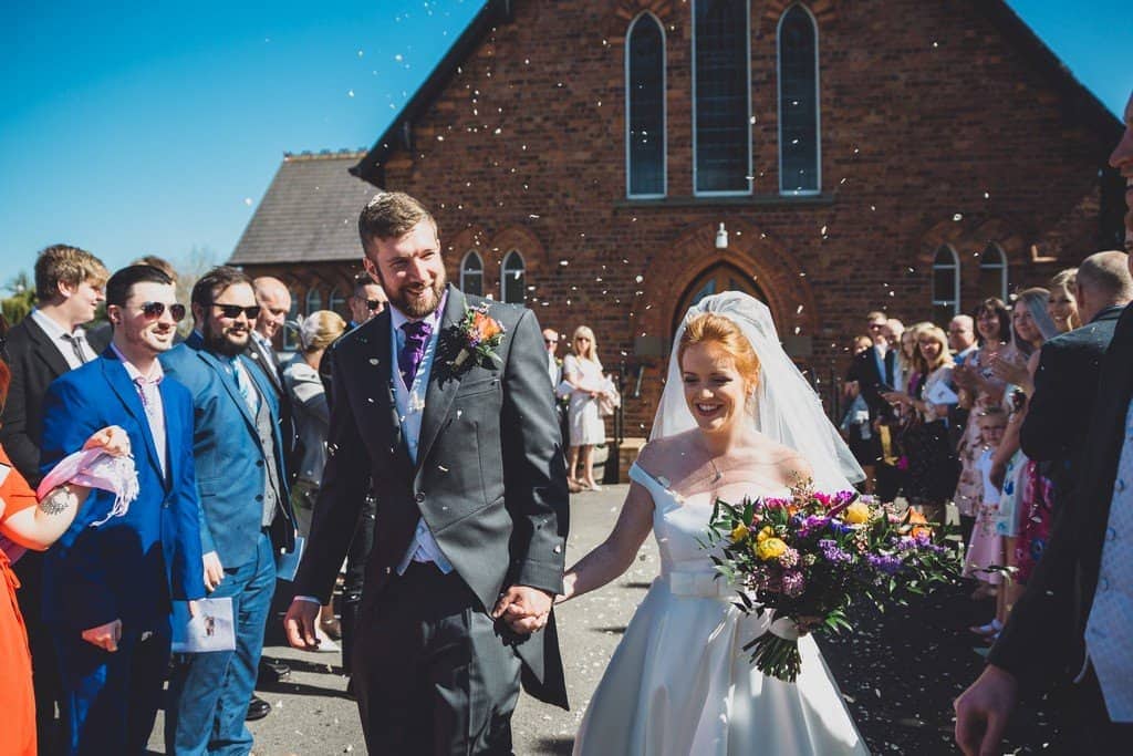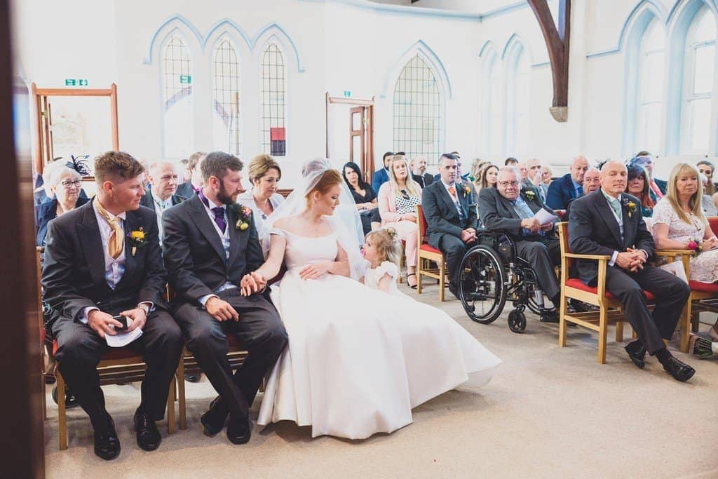 I wanted to have a traditional spring wedding because nobody does that anymore. We had a church with an organist, the children chose the multi coloured theme and I wore a veil over my face. The whole day I wanted to be family oriented.The speeches were amazing and the gift Chris got me on the morning of the wedding was so thoughtful and unlike him at all so that was a lovely surprise. We were lucky with the weather too!