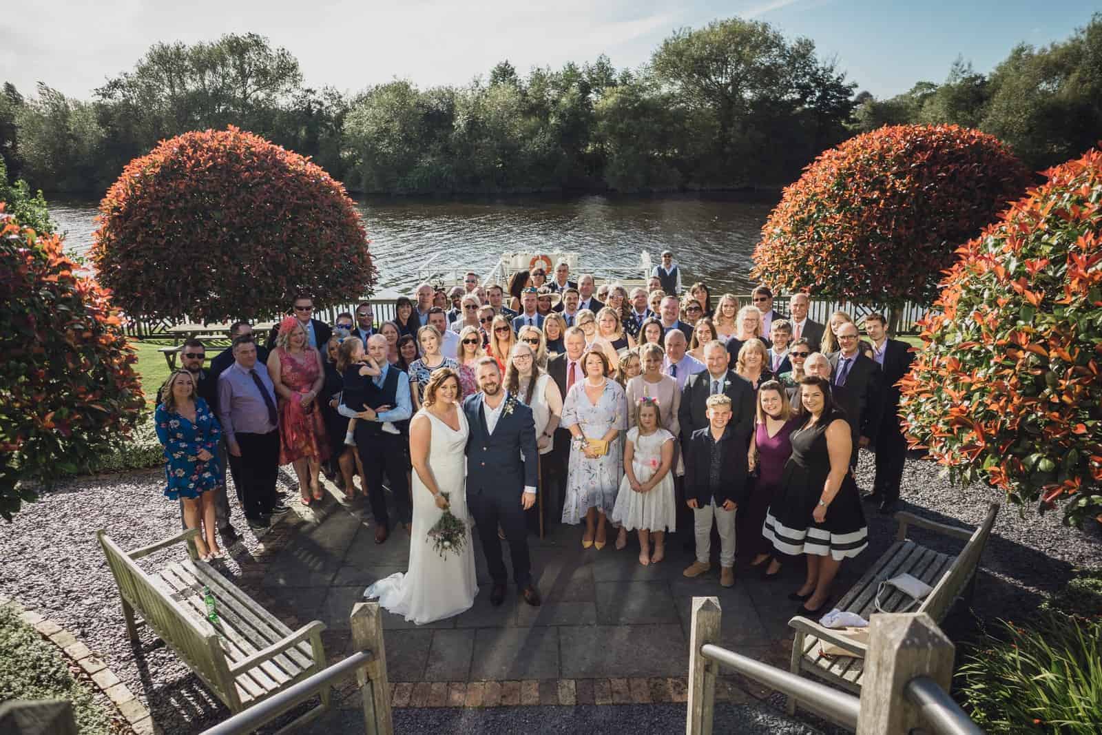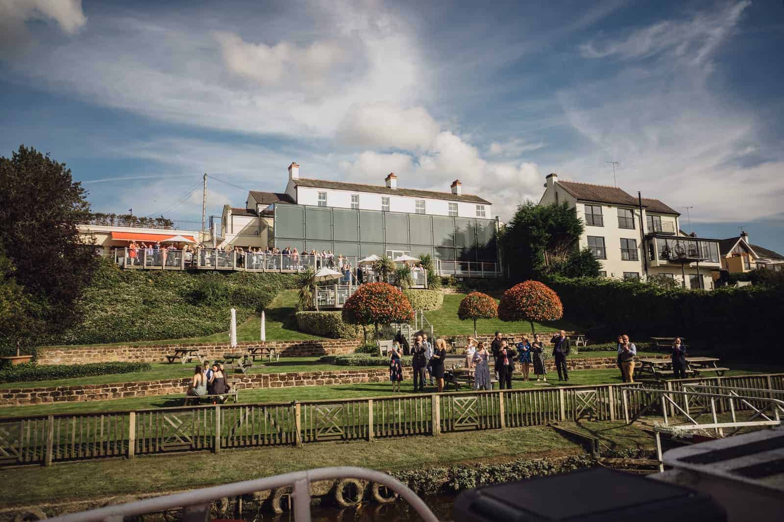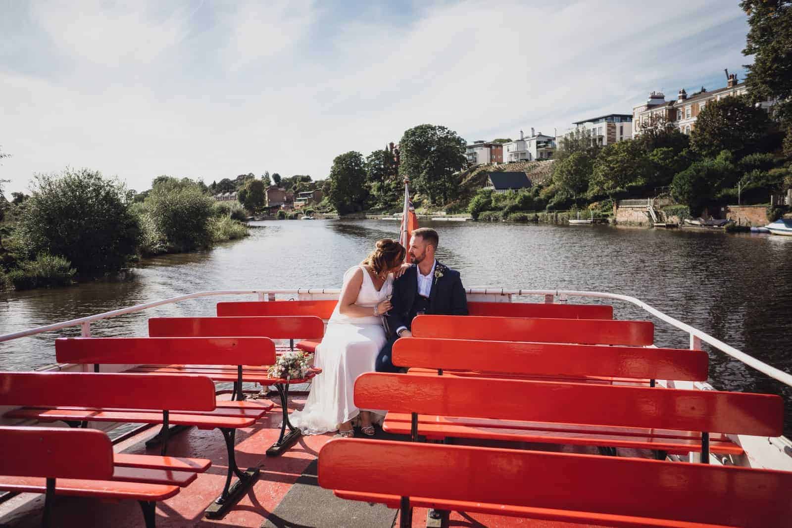 I absolutely loved capturing Steph & Jai’s wedding at the Roman City of Chester in Cheshire. Their day was planned beautifully and so unique to them, chilled and memorable. I met Steph and her friends at a local hotel in the city centre for preperations in the afternoon. Makeup artist Grace did an amazing job, keeping everyone calm and relaxed. Jai then came to the hotel to do a first look with Steph, they then had a wander together through the city walls for relaxed couple portraits. We (the three of us!) then headed down the river on the boat – The Jackie! to the restaurant Et Alia. Their guests all spread out over the banks of the river, welcoming the couple ready for their civil ceremony. Together, they walked down the aisle – a truly special moment to capture.
