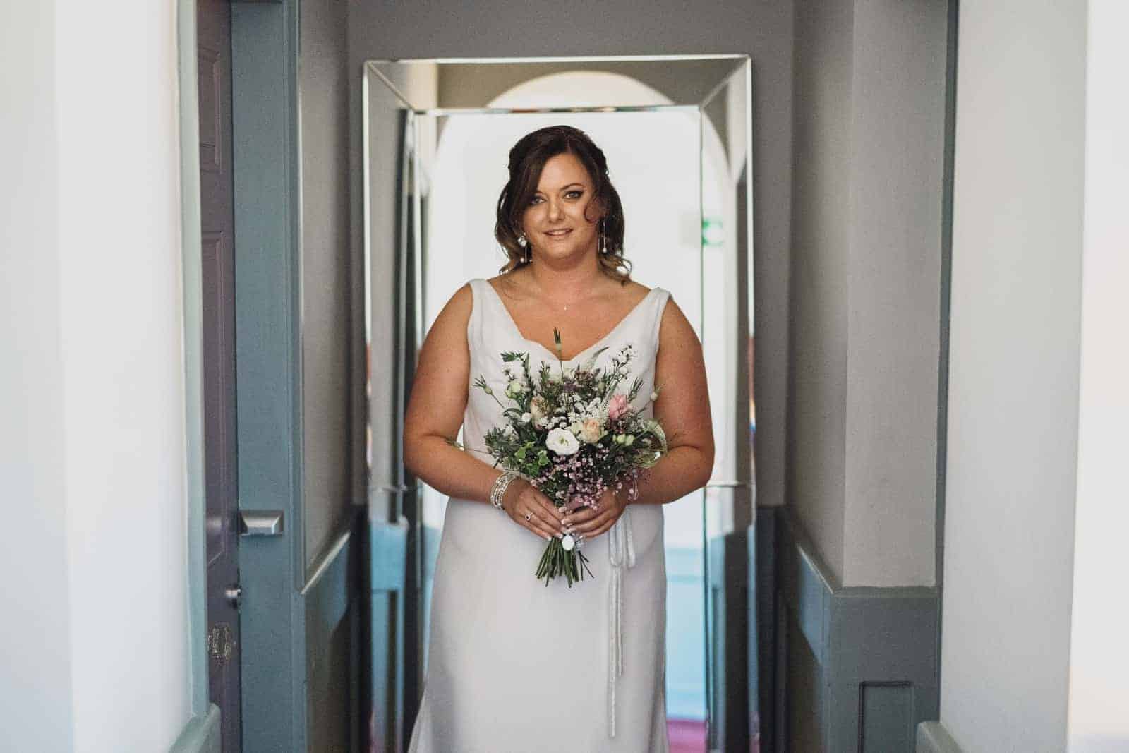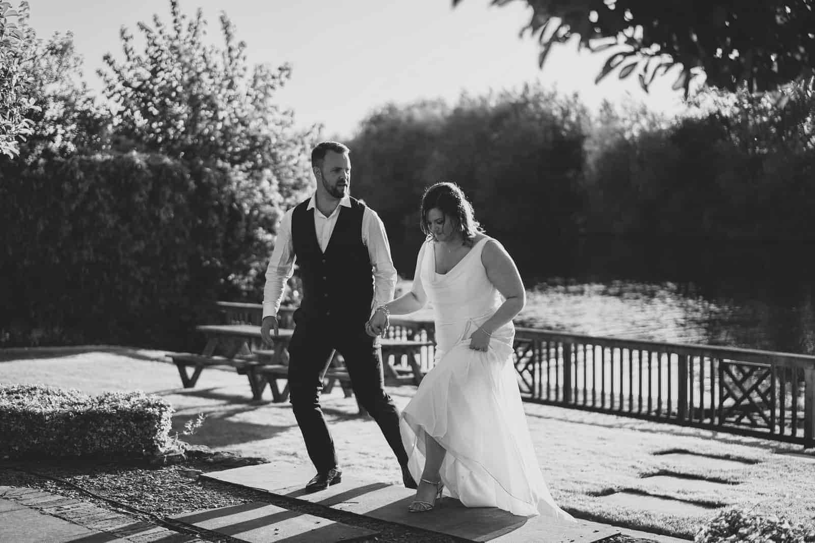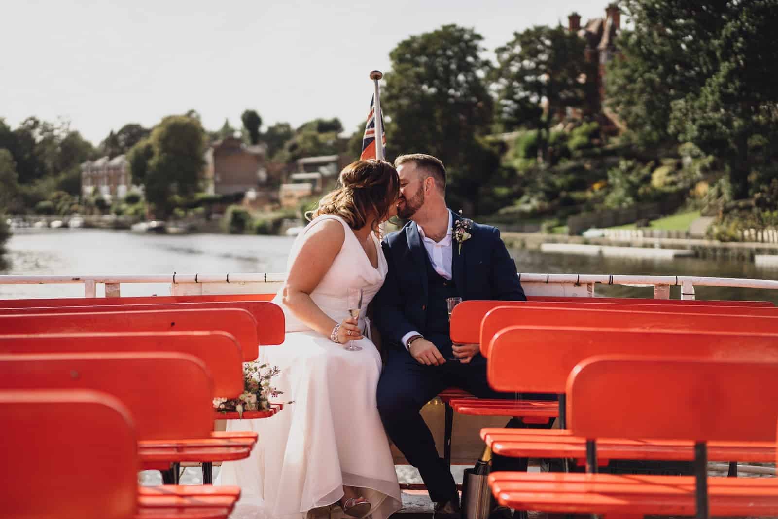 I absolutely loved capturing Steph & Jai’s wedding at the Roman City of Chester in Cheshire. Their day was planned beautifully and so unique to them, chilled and memorable. I met Steph and her friends at a local hotel in the city centre for preperations in the afternoon. Makeup artist Grace did an amazing job, keeping everyone calm and relaxed. Jai then came to the hotel to do a first look with Steph, they then had a wander together through the city walls for relaxed couple portraits. We (the three of us!) then headed down the river on the boat – The Jackie! to the restaurant Et Alia. Their guests all spread out over the banks of the river, welcoming the couple ready for their civil ceremony. Together, they walked down the aisle – a truly special moment to capture.